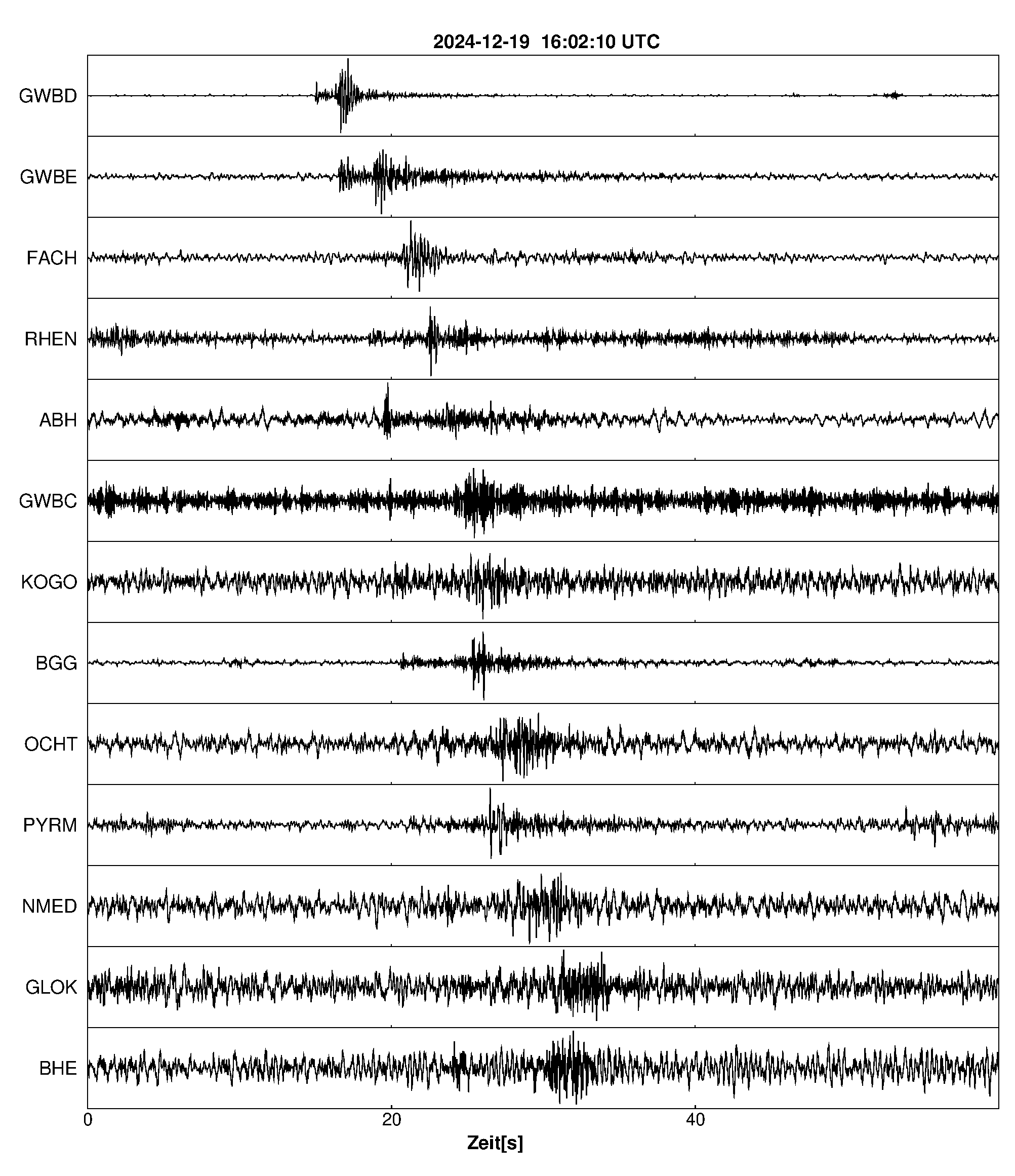 Pfadnavigation Startseite Geologischer Dienst Erdbeben Aktuelle Erdbeben Erdbeben bei Heidenrod, Rheingau-Taunus-Kreis, HS Teilen Erdbeben bei Heidenrod, Rheingau-Taunus-Kreis, HS Erdbeben außerhalb von Baden-Württemberg und Rheinland-Pfalz:Die maßgeblichen Angaben veröffentlicht der lokal zuständige Erdbebendienst. Erdbeben bei: Heidenrod, Rheingau-Taunus-Kreis, HS Datum/Uhrzeit: am 19.12.2024 um 17:02 Uhr Ortszeit (MEZ) Stärke: 0.9 (Magnitude auf der Richter-Skala) Epizentrum: 50.12° N ㅤ 7.93° E Herdtiefe: ca. 11 km unter der Erdoberfläche Bemerkung: sehr schwaches Erdbeben Seismogramme ausgewählter Erdbebenmessstationen: Erläuterungen: Datum/Uhrzeit:Datum und Zeit des Erdbebens in Ortszeit, also MEZ oder MESZ; Epizentrum:Punkt an der Erdoberfläche über dem Hypozentrum (Lage des Erdbebenherdes in der Tiefe); Magnitude:Erdbebenstärke auf der Richterskala (Lokalmagnitude ML); Herdtiefe:Tiefe des Erdbebens (Hypozentrums) in Kilometern unter NN. Seismogramme:Details zu den Erdbebenmessstationen finden sich im Kartenviewer des LGRB (Baden-Württemberg) und im Kartenviewer des LGB (Rheinland-Pfalz).