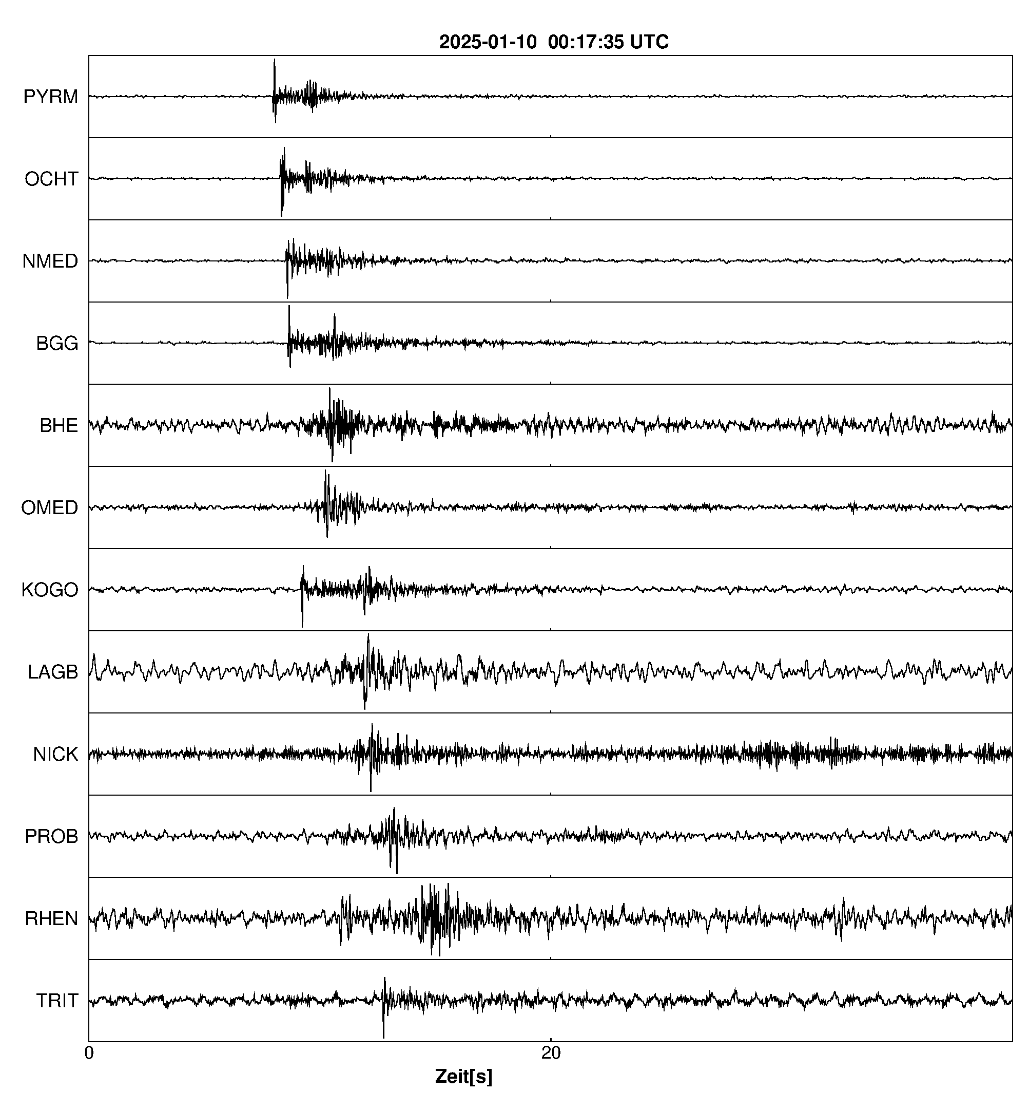 Pfadnavigation Startseite Geologischer Dienst Erdbeben Aktuelle Erdbeben Erdbeben bei Einig, Lkrs. Mayen-Koblenz, RP Teilen Erdbeben bei Einig, Lkrs. Mayen-Koblenz, RP Erdbeben bei: Einig, Lkrs. Mayen-Koblenz, RP Datum/Uhrzeit: am 10.01.2025 um 01:17 Uhr Ortszeit (MEZ) Stärke: 0.5 (Magnitude auf der Richter-Skala) Epizentrum: 50.28° N ㅤ 7.27° E Herdtiefe: ca. 3 km unter der Erdoberfläche Bemerkung: sehr schwaches Erdbeben Seismogramme ausgewählter Erdbebenmessstationen: Erläuterungen: Datum/Uhrzeit:Datum und Zeit des Erdbebens in Ortszeit, also MEZ oder MESZ; Epizentrum:Punkt an der Erdoberfläche über dem Hypozentrum (Lage des Erdbebenherdes in der Tiefe); Magnitude:Erdbebenstärke auf der Richterskala (Lokalmagnitude ML); Herdtiefe:Tiefe des Erdbebens (Hypozentrums) in Kilometern unter NN. Seismogramme:Details zu den Erdbebenmessstationen finden sich im Kartenviewer des LGRB (Baden-Württemberg) und im Kartenviewer des LGB (Rheinland-Pfalz).