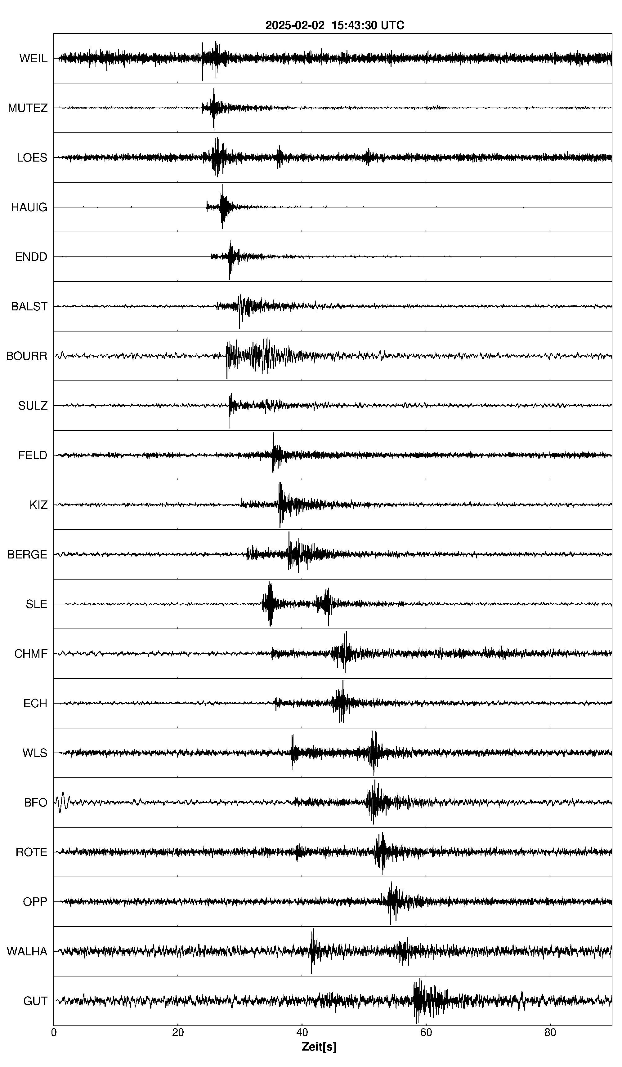 Pfadnavigation Startseite Geologischer Dienst Erdbeben Aktuelle Erdbeben Erdbeben bei Birsfelden, Kt. Basel-Landschaft, CH Teilen Erdbeben bei Birsfelden, Kt. Basel-Landschaft, CH Erdbeben außerhalb von Baden-Württemberg und Rheinland-Pfalz:Die maßgeblichen Angaben veröffentlicht der lokal zuständige Erdbebendienst. Erdbeben bei: Birsfelden, Kt. Basel-Landschaft, CH Datum/Uhrzeit: am 02.02.2025 um 16:43 Uhr Ortszeit (MEZ) Stärke: 1.2 (Magnitude auf der Richter-Skala) Epizentrum: 47.56° N ㅤ 7.62° E Herdtiefe: ca. 13 km unter der Erdoberfläche Bemerkung: sehr schwaches Erdbeben Seismogramme ausgewählter Erdbebenmessstationen: Erläuterungen: Datum/Uhrzeit:Datum und Zeit des Erdbebens in Ortszeit, also MEZ oder MESZ; Epizentrum:Punkt an der Erdoberfläche über dem Hypozentrum (Lage des Erdbebenherdes in der Tiefe); Magnitude:Erdbebenstärke auf der Richterskala (Lokalmagnitude ML); Herdtiefe:Tiefe des Erdbebens (Hypozentrums) in Kilometern unter NN. Seismogramme:Details zu den Erdbebenmessstationen finden sich im Kartenviewer des LGRB (Baden-Württemberg) und im Kartenviewer des LGB (Rheinland-Pfalz).