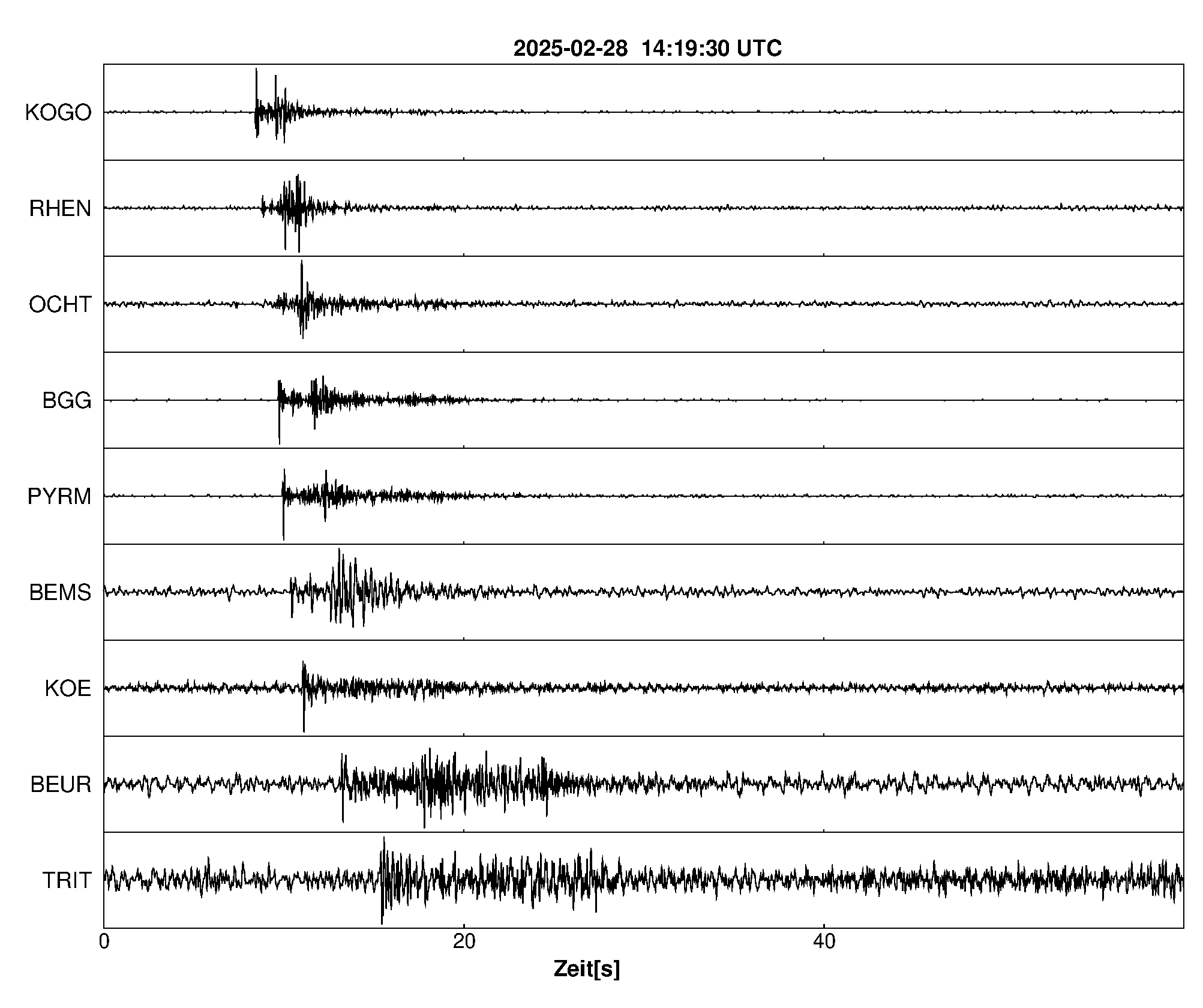 Pfadnavigation Startseite Geologischer Dienst Erdbeben Aktuelle Erdbeben Erdbeben bei Dieblich, Lkrs. Mayen-Koblenz, RP Teilen Erdbeben bei Dieblich, Lkrs. Mayen-Koblenz, RP Erdbeben bei: Dieblich, Lkrs. Mayen-Koblenz, RP Datum/Uhrzeit: am 28.02.2025 um 15:19 Uhr Ortszeit (MEZ) Stärke: 0.8 (Magnitude auf der Richter-Skala) Epizentrum: 50.28° N ㅤ 7.49° E Herdtiefe: ca. 5 km unter der Erdoberfläche Bemerkung: sehr schwaches Erdbeben Seismogramme ausgewählter Erdbebenmessstationen: Erläuterungen: Datum/Uhrzeit:Datum und Zeit des Erdbebens in Ortszeit, also MEZ oder MESZ; Epizentrum:Punkt an der Erdoberfläche über dem Hypozentrum (Lage des Erdbebenherdes in der Tiefe); Magnitude:Erdbebenstärke auf der Richterskala (Lokalmagnitude ML); Herdtiefe:Tiefe des Erdbebens (Hypozentrums) in Kilometern unter NN. Seismogramme:Details zu den Erdbebenmessstationen finden sich im Kartenviewer des LGRB (Baden-Württemberg) und im Kartenviewer des LGB (Rheinland-Pfalz).