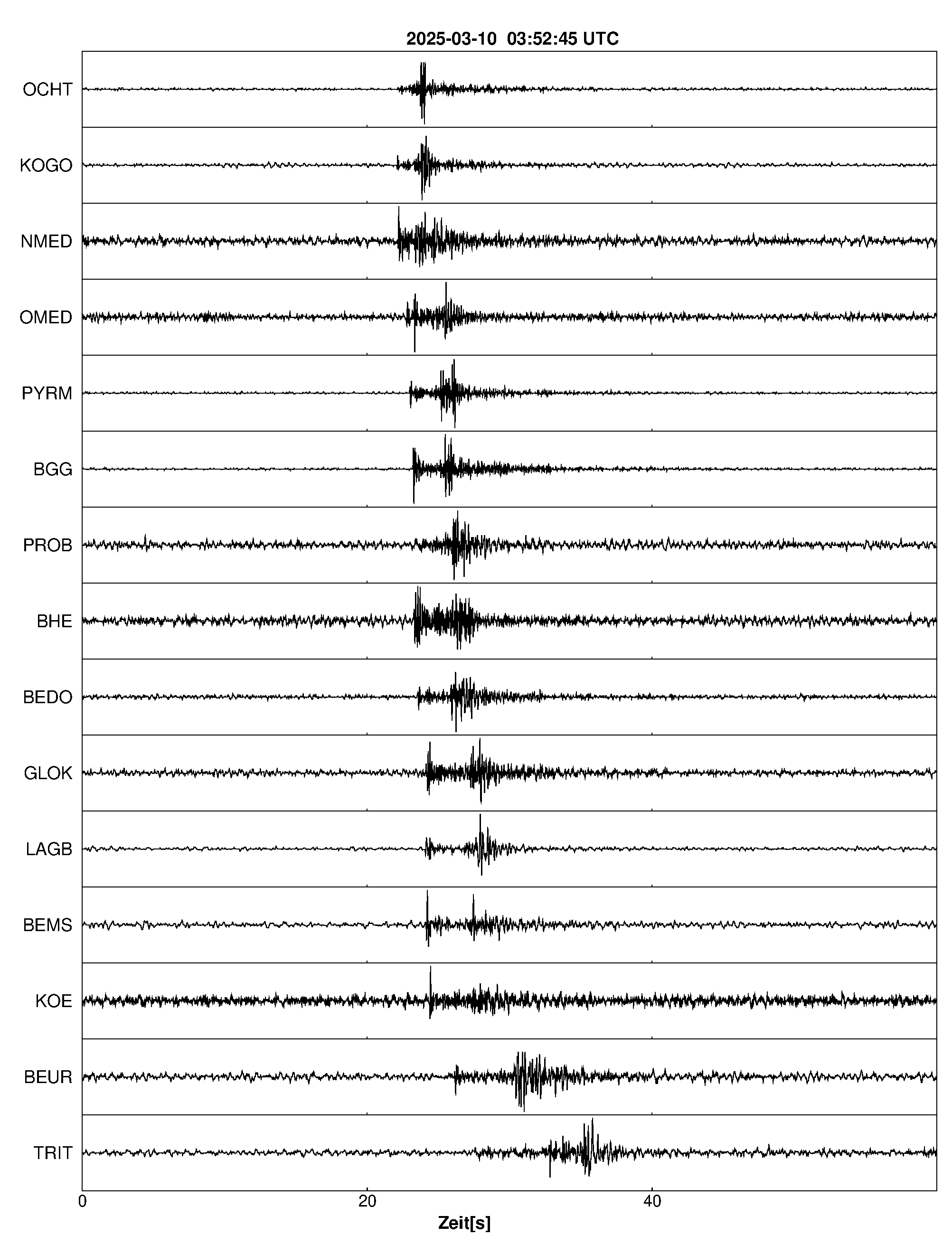 Pfadnavigation Startseite Geologischer Dienst Erdbeben Aktuelle Erdbeben Erdbeben bei Ochtendung, Lkrs. Mayen-Koblenz, RP Teilen Erdbeben bei Ochtendung, Lkrs. Mayen-Koblenz, RP Erdbeben bei: Ochtendung, Lkrs. Mayen-Koblenz, RP Datum/Uhrzeit: am 10.03.2025 um 04:53 Uhr Ortszeit (MEZ) Stärke: 0.8 (Magnitude auf der Richter-Skala) Epizentrum: 50.34° N ㅤ 7.41° E Herdtiefe: ca. 12 km unter der Erdoberfläche Bemerkung: sehr schwaches Erdbeben Seismogramme ausgewählter Erdbebenmessstationen: Erläuterungen: Datum/Uhrzeit:Datum und Zeit des Erdbebens in Ortszeit, also MEZ oder MESZ; Epizentrum:Punkt an der Erdoberfläche über dem Hypozentrum (Lage des Erdbebenherdes in der Tiefe); Magnitude:Erdbebenstärke auf der Richterskala (Lokalmagnitude ML); Herdtiefe:Tiefe des Erdbebens (Hypozentrums) in Kilometern unter NN. Seismogramme:Details zu den Erdbebenmessstationen finden sich im Kartenviewer des LGRB (Baden-Württemberg) und im Kartenviewer des LGB (Rheinland-Pfalz).