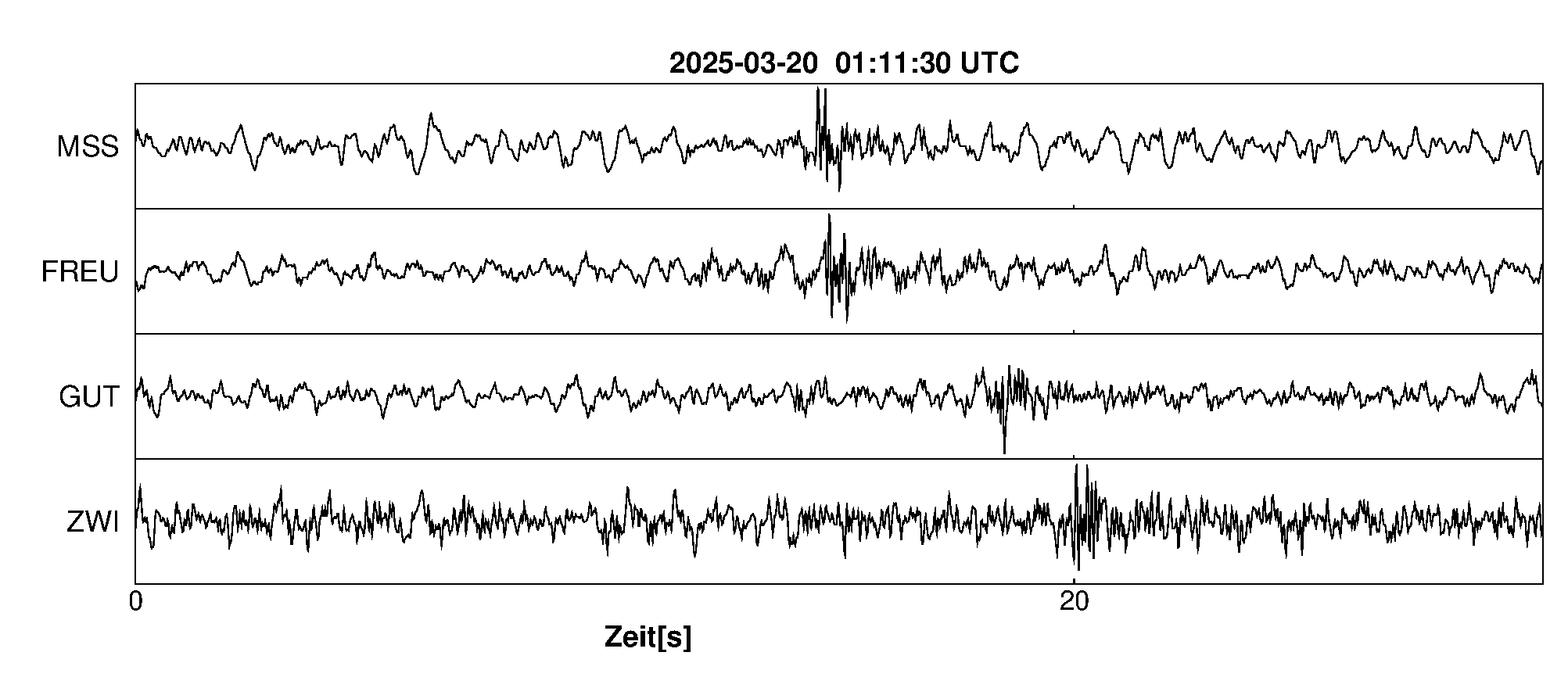 Pfadnavigation Startseite Geologischer Dienst Erdbeben Aktuelle Erdbeben Erdbeben bei Hechingen, Zollernalbkreis, BW Teilen Erdbeben bei Hechingen, Zollernalbkreis, BW Erdbeben bei: Hechingen, Zollernalbkreis, BW Datum/Uhrzeit: am 20.03.2025 um 02:11 Uhr Ortszeit (MEZ) Stärke: 0.4 (Magnitude auf der Richter-Skala) Epizentrum: 48.34° N ㅤ 8.92° E Herdtiefe: ca. 10 km unter der Erdoberfläche Bemerkung: sehr schwaches Erdbeben Seismogramme ausgewählter Erdbebenmessstationen: Erläuterungen: Datum/Uhrzeit:Datum und Zeit des Erdbebens in Ortszeit, also MEZ oder MESZ; Epizentrum:Punkt an der Erdoberfläche über dem Hypozentrum (Lage des Erdbebenherdes in der Tiefe); Magnitude:Erdbebenstärke auf der Richterskala (Lokalmagnitude ML); Herdtiefe:Tiefe des Erdbebens (Hypozentrums) in Kilometern unter NN. Seismogramme:Details zu den Erdbebenmessstationen finden sich im Kartenviewer des LGRB (Baden-Württemberg) und im Kartenviewer des LGB (Rheinland-Pfalz).