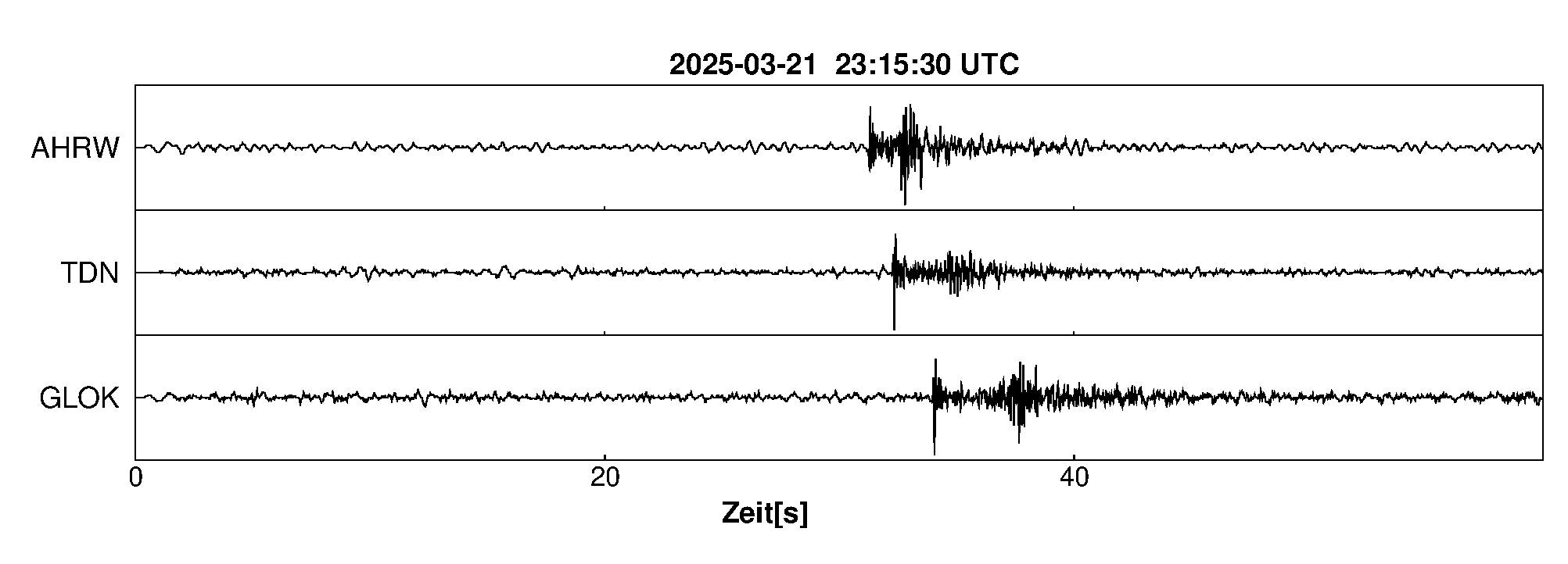 Pfadnavigation Startseite Geologischer Dienst Erdbeben Aktuelle Erdbeben Erdbeben bei Bad Neuenahr-Ahrweiler, Lkrs. Ahrweiler, RP Teilen Erdbeben bei Bad Neuenahr-Ahrweiler, Lkrs. Ahrweiler, RP Erdbeben bei: Bad Neuenahr-Ahrweiler, Lkrs. Ahrweiler, RP Datum/Uhrzeit: am 22.03.2025 um 00:15 Uhr Ortszeit (MEZ) Stärke: 0.6 (Magnitude auf der Richter-Skala) Epizentrum: 50.51° N ㅤ 7.08° E Herdtiefe: ca. 9 km unter der Erdoberfläche Bemerkung: sehr schwaches Erdbeben Seismogramme ausgewählter Erdbebenmessstationen: Erläuterungen: Datum/Uhrzeit:Datum und Zeit des Erdbebens in Ortszeit, also MEZ oder MESZ; Epizentrum:Punkt an der Erdoberfläche über dem Hypozentrum (Lage des Erdbebenherdes in der Tiefe); Magnitude:Erdbebenstärke auf der Richterskala (Lokalmagnitude ML); Herdtiefe:Tiefe des Erdbebens (Hypozentrums) in Kilometern unter NN. Seismogramme:Details zu den Erdbebenmessstationen finden sich im Kartenviewer des LGRB (Baden-Württemberg) und im Kartenviewer des LGB (Rheinland-Pfalz).