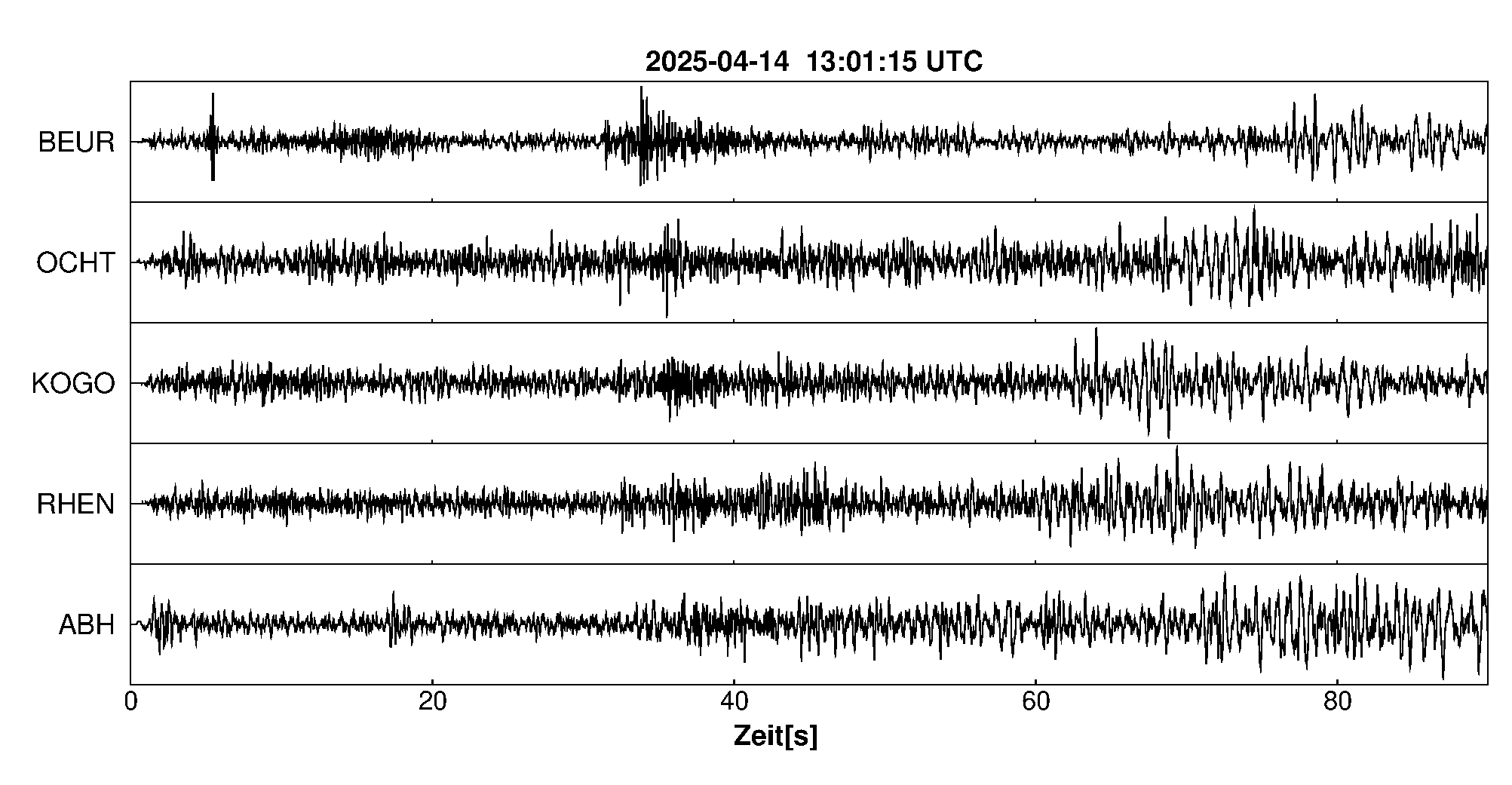 Pfadnavigation Startseite Geologischer Dienst Erdbeben Aktuelle Erdbeben Erdbeben bei Mörsdorf, Rhein-Hunsrück-Kreis, RP Teilen Erdbeben bei Mörsdorf, Rhein-Hunsrück-Kreis, RP Erdbeben bei: Mörsdorf, Rhein-Hunsrück-Kreis, RP Datum/Uhrzeit: am 14.04.2025 um 15:01 Uhr Ortszeit (MESZ) Stärke: 0.8 (Magnitude auf der Richter-Skala) Epizentrum: 50.12° N ㅤ 7.33° E Herdtiefe: ca. 11 km unter der Erdoberfläche Bemerkung: sehr schwaches Erdbeben Seismogramme ausgewählter Erdbebenmessstationen: Erläuterungen: Datum/Uhrzeit:Datum und Zeit des Erdbebens in Ortszeit, also MEZ oder MESZ; Epizentrum:Punkt an der Erdoberfläche über dem Hypozentrum (Lage des Erdbebenherdes in der Tiefe); Magnitude:Erdbebenstärke auf der Richterskala (Lokalmagnitude ML); Herdtiefe:Tiefe des Erdbebens (Hypozentrums) in Kilometern unter NN. Seismogramme:Details zu den Erdbebenmessstationen finden sich im Kartenviewer des LGRB (Baden-Württemberg) und im Kartenviewer des LGB (Rheinland-Pfalz).