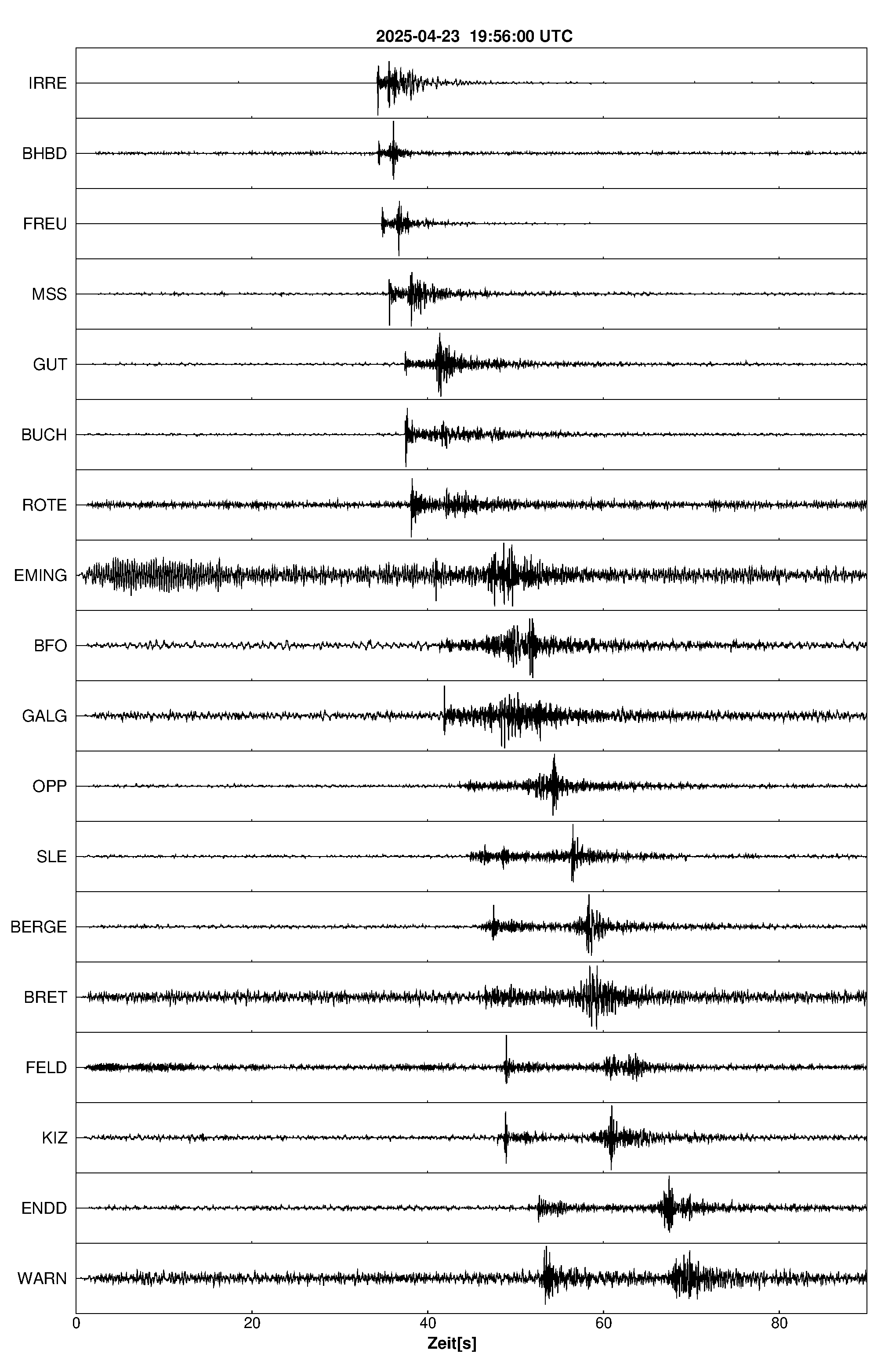 Pfadnavigation Startseite Geologischer Dienst Erdbeben Aktuelle Erdbeben Erdbeben bei Jungingen, Zollernalbkreis, BW Teilen Erdbeben bei Jungingen, Zollernalbkreis, BW Erdbeben bei: Jungingen, Zollernalbkreis, BW Datum/Uhrzeit: am 23.04.2025 um 21:56 Uhr Ortszeit (MESZ) Stärke: 1.4 (Magnitude auf der Richter-Skala) Epizentrum: 48.32° N ㅤ 9.03° E Herdtiefe: ca. 7 km unter der Erdoberfläche Bemerkung: sehr schwaches Erdbeben Seismogramme ausgewählter Erdbebenmessstationen: Erläuterungen: Datum/Uhrzeit:Datum und Zeit des Erdbebens in Ortszeit, also MEZ oder MESZ; Epizentrum:Punkt an der Erdoberfläche über dem Hypozentrum (Lage des Erdbebenherdes in der Tiefe); Magnitude:Erdbebenstärke auf der Richterskala (Lokalmagnitude ML); Herdtiefe:Tiefe des Erdbebens (Hypozentrums) in Kilometern unter NN. Seismogramme:Details zu den Erdbebenmessstationen finden sich im Kartenviewer des LGRB (Baden-Württemberg) und im Kartenviewer des LGB (Rheinland-Pfalz).