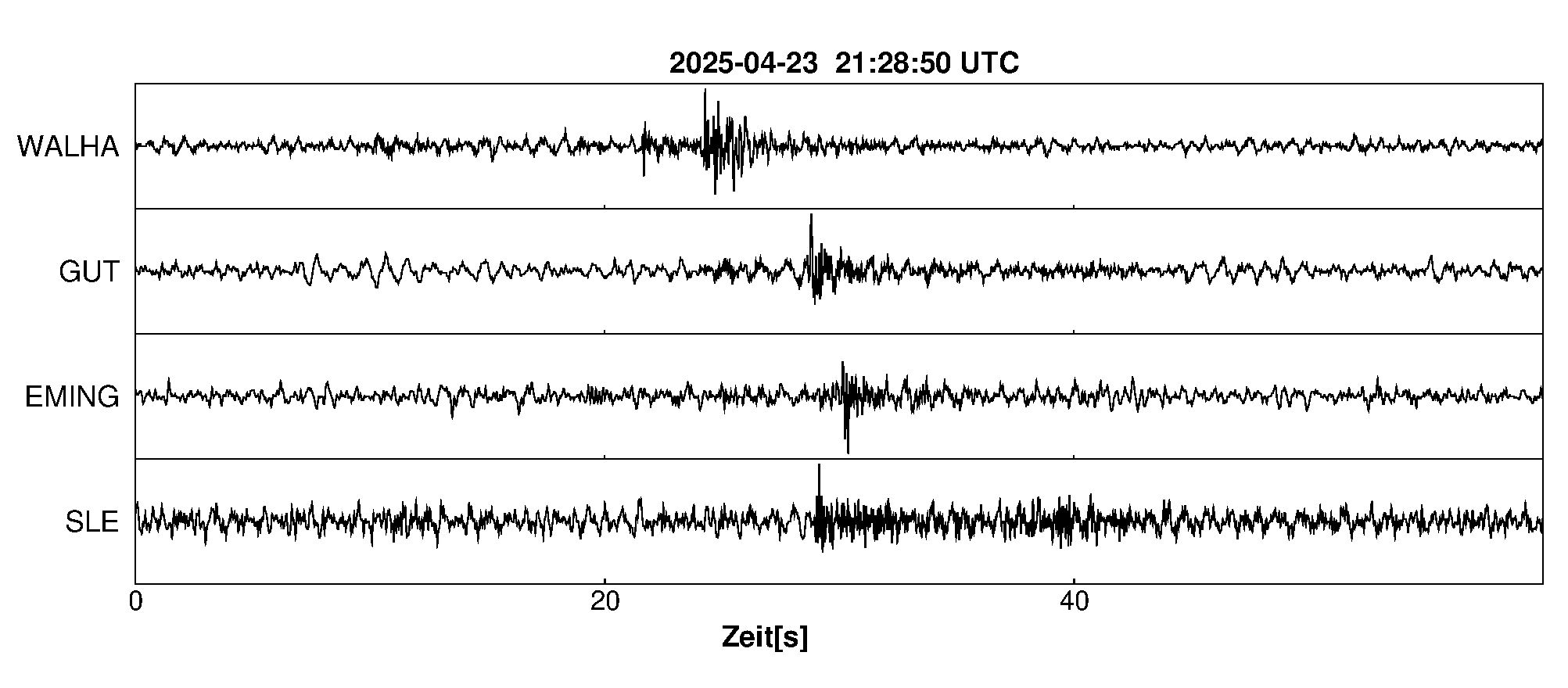 Pfadnavigation Startseite Geologischer Dienst Erdbeben Aktuelle Erdbeben Erdbeben bei Deggenhausertal, Bodenseekreis, BW Teilen Erdbeben bei Deggenhausertal, Bodenseekreis, BW Erdbeben bei: Deggenhausertal, Bodenseekreis, BW Datum/Uhrzeit: am 23.04.2025 um 23:29 Uhr Ortszeit (MESZ) Stärke: 0.7 (Magnitude auf der Richter-Skala) Epizentrum: 47.8° N ㅤ 9.36° E Herdtiefe: ca. 11 km unter der Erdoberfläche Bemerkung: sehr schwaches Erdbeben Seismogramme ausgewählter Erdbebenmessstationen: Erläuterungen: Datum/Uhrzeit:Datum und Zeit des Erdbebens in Ortszeit, also MEZ oder MESZ; Epizentrum:Punkt an der Erdoberfläche über dem Hypozentrum (Lage des Erdbebenherdes in der Tiefe); Magnitude:Erdbebenstärke auf der Richterskala (Lokalmagnitude ML); Herdtiefe:Tiefe des Erdbebens (Hypozentrums) in Kilometern unter NN. Seismogramme:Details zu den Erdbebenmessstationen finden sich im Kartenviewer des LGRB (Baden-Württemberg) und im Kartenviewer des LGB (Rheinland-Pfalz).