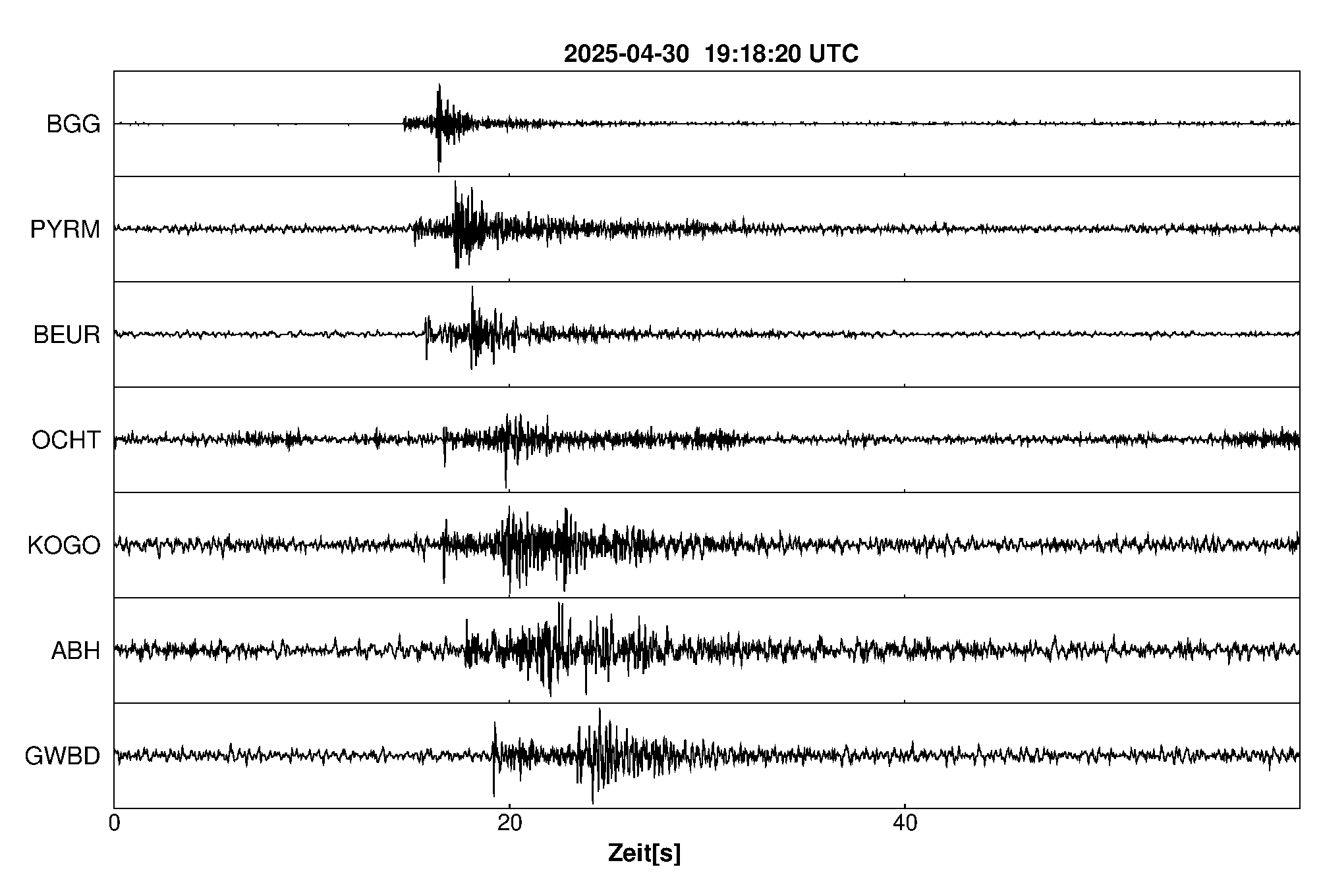 Pfadnavigation Startseite Geologischer Dienst Erdbeben Aktuelle Erdbeben Erdbeben bei Mörsdorf, Rhein-Hunsrück-Kreis, RP Teilen Erdbeben bei Mörsdorf, Rhein-Hunsrück-Kreis, RP Erdbeben bei: Mörsdorf, Rhein-Hunsrück-Kreis, RP Datum/Uhrzeit: am 30.04.2025 um 21:18 Uhr Ortszeit (MESZ) Stärke: 0.6 (Magnitude auf der Richter-Skala) Epizentrum: 50.12° N ㅤ 7.34° E Herdtiefe: ca. 10 km unter der Erdoberfläche Bemerkung: sehr schwaches Erdbeben Seismogramme ausgewählter Erdbebenmessstationen: Erläuterungen: Datum/Uhrzeit:Datum und Zeit des Erdbebens in Ortszeit, also MEZ oder MESZ; Epizentrum:Punkt an der Erdoberfläche über dem Hypozentrum (Lage des Erdbebenherdes in der Tiefe); Magnitude:Erdbebenstärke auf der Richterskala (Lokalmagnitude ML); Herdtiefe:Tiefe des Erdbebens (Hypozentrums) in Kilometern unter NN. Seismogramme:Details zu den Erdbebenmessstationen finden sich im Kartenviewer des LGRB (Baden-Württemberg) und im Kartenviewer des LGB (Rheinland-Pfalz).