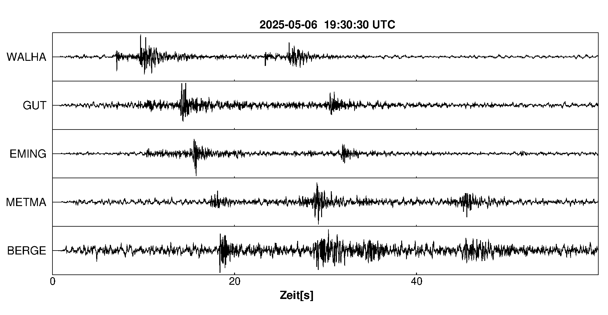Pfadnavigation Startseite Geologischer Dienst Erdbeben Aktuelle Erdbeben Erdbeben bei Deggenhausertal, Bodenseekreis, BW Teilen Erdbeben bei Deggenhausertal, Bodenseekreis, BW Erdbeben bei: Deggenhausertal, Bodenseekreis, BW Datum/Uhrzeit: am 06.05.2025 um 21:30 Uhr Ortszeit (MESZ) Stärke: 0.6 (Magnitude auf der Richter-Skala) Epizentrum: 47.8° N ㅤ 9.36° E Herdtiefe: ca. 11 km unter der Erdoberfläche Bemerkung: sehr schwaches Erdbeben Seismogramme ausgewählter Erdbebenmessstationen: Erläuterungen: Datum/Uhrzeit:Datum und Zeit des Erdbebens in Ortszeit, also MEZ oder MESZ; Epizentrum:Punkt an der Erdoberfläche über dem Hypozentrum (Lage des Erdbebenherdes in der Tiefe); Magnitude:Erdbebenstärke auf der Richterskala (Lokalmagnitude ML); Herdtiefe:Tiefe des Erdbebens (Hypozentrums) in Kilometern unter NN. Seismogramme:Details zu den Erdbebenmessstationen finden sich im Kartenviewer des LGRB (Baden-Württemberg) und im Kartenviewer des LGB (Rheinland-Pfalz).