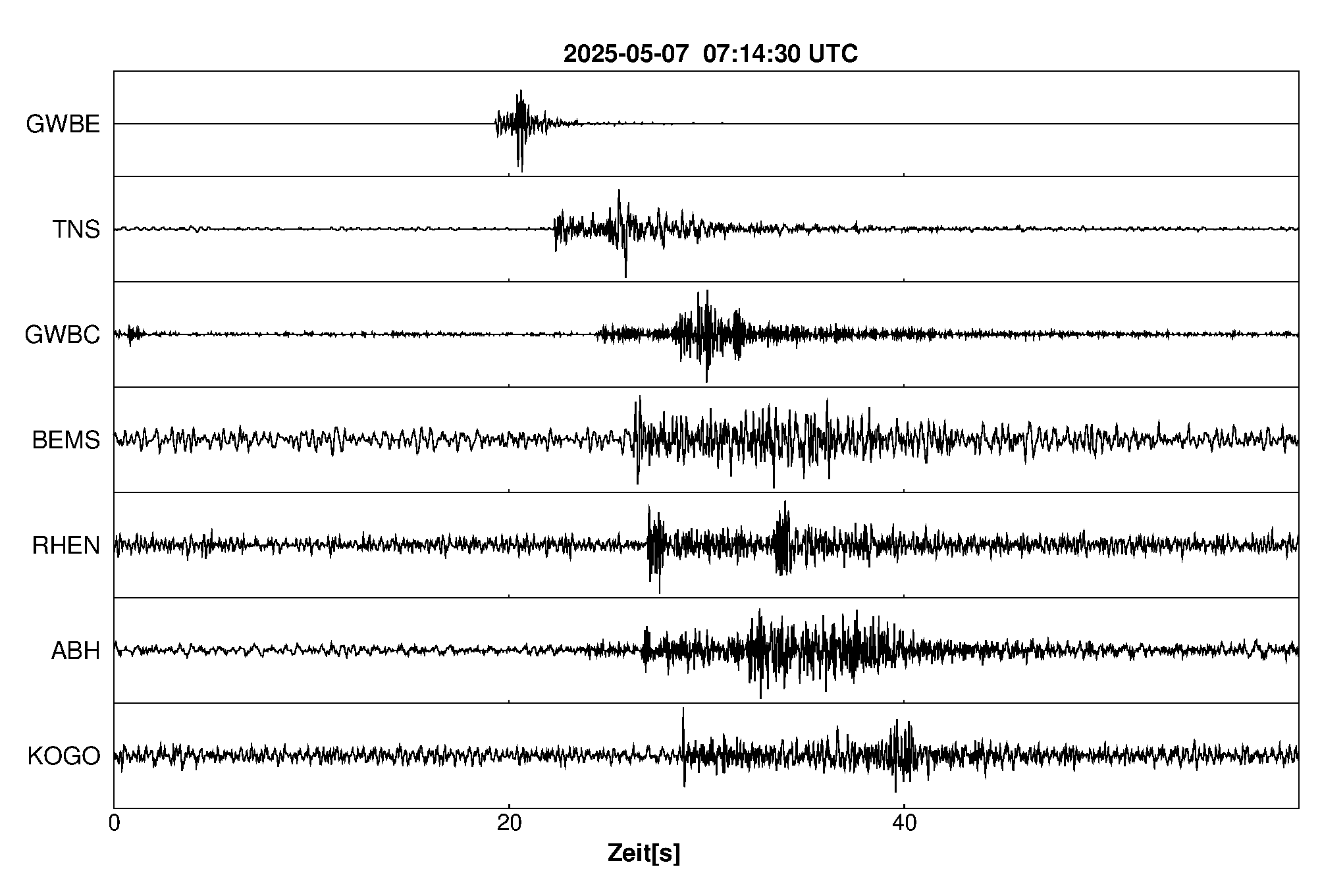 Pfadnavigation Startseite Geologischer Dienst Erdbeben Aktuelle Erdbeben Erdbeben bei Wiesbaden, HS Teilen Erdbeben bei Wiesbaden, HS Erdbeben außerhalb von Baden-Württemberg und Rheinland-Pfalz:Die maßgeblichen Angaben veröffentlicht der lokal zuständige Erdbebendienst. Erdbeben bei: Wiesbaden, HS Datum/Uhrzeit: am 07.05.2025 um 09:14 Uhr Ortszeit (MESZ) Stärke: 1.3 (Magnitude auf der Richter-Skala) Epizentrum: 50.07° N ㅤ 8.24° E Herdtiefe: ca. 2 km unter der Erdoberfläche Bemerkung: sehr schwaches Erdbeben Seismogramme ausgewählter Erdbebenmessstationen: Erläuterungen: Datum/Uhrzeit:Datum und Zeit des Erdbebens in Ortszeit, also MEZ oder MESZ; Epizentrum:Punkt an der Erdoberfläche über dem Hypozentrum (Lage des Erdbebenherdes in der Tiefe); Magnitude:Erdbebenstärke auf der Richterskala (Lokalmagnitude ML); Herdtiefe:Tiefe des Erdbebens (Hypozentrums) in Kilometern unter NN. Seismogramme:Details zu den Erdbebenmessstationen finden sich im Kartenviewer des LGRB (Baden-Württemberg) und im Kartenviewer des LGB (Rheinland-Pfalz).