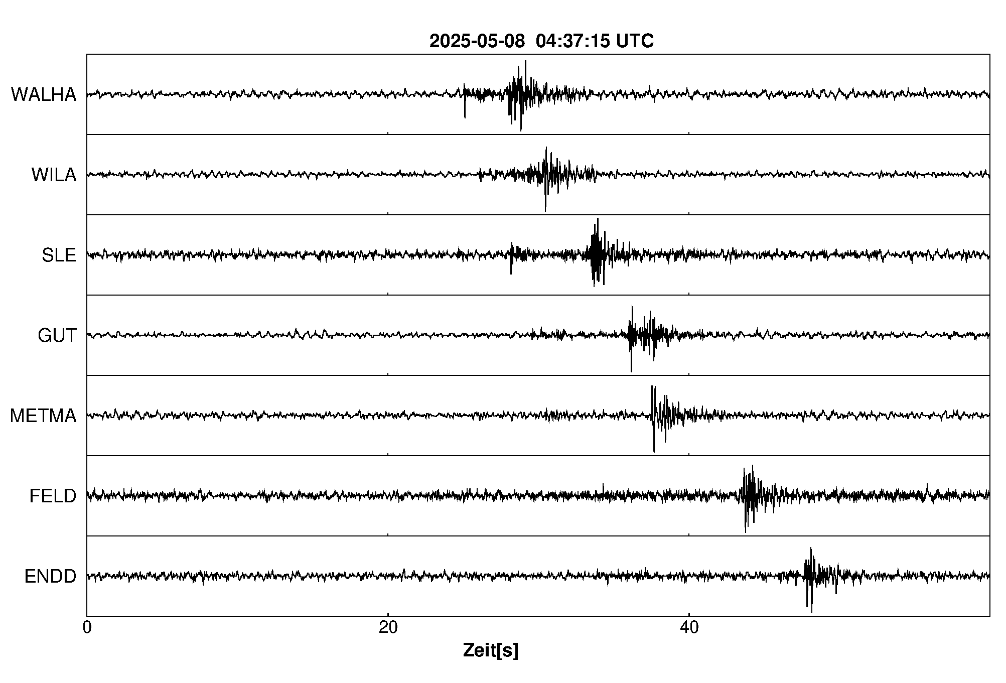 Pfadnavigation Startseite Geologischer Dienst Erdbeben Aktuelle Erdbeben Erdbeben bei Homburg, Kt. Thurgau, CH Teilen Erdbeben bei Homburg, Kt. Thurgau, CH Erdbeben außerhalb von Baden-Württemberg und Rheinland-Pfalz:Die maßgeblichen Angaben veröffentlicht der lokal zuständige Erdbebendienst. Erdbeben bei: Homburg, Kt. Thurgau, CH Datum/Uhrzeit: am 08.05.2025 um 06:37 Uhr Ortszeit (MESZ) Stärke: 1.0 (Magnitude auf der Richter-Skala) Epizentrum: 47.63° N ㅤ 8.99° E Herdtiefe: ca. 20 km unter der Erdoberfläche Bemerkung: sehr schwaches Erdbeben Seismogramme ausgewählter Erdbebenmessstationen: Erläuterungen: Datum/Uhrzeit:Datum und Zeit des Erdbebens in Ortszeit, also MEZ oder MESZ; Epizentrum:Punkt an der Erdoberfläche über dem Hypozentrum (Lage des Erdbebenherdes in der Tiefe); Magnitude:Erdbebenstärke auf der Richterskala (Lokalmagnitude ML); Herdtiefe:Tiefe des Erdbebens (Hypozentrums) in Kilometern unter NN. Seismogramme:Details zu den Erdbebenmessstationen finden sich im Kartenviewer des LGRB (Baden-Württemberg) und im Kartenviewer des LGB (Rheinland-Pfalz).