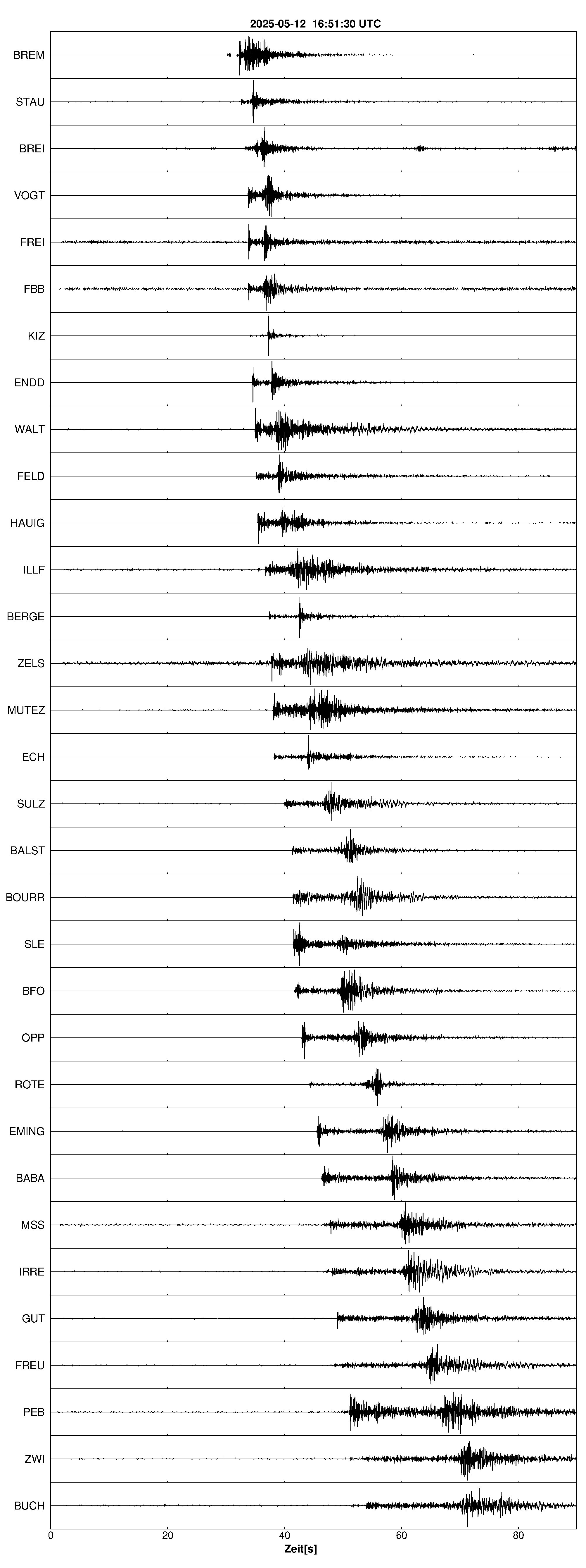 Pfadnavigation Startseite Geologischer Dienst Erdbeben Aktuelle Erdbeben Erdbeben bei Hartheim am Rhein, Lkrs. Breisgau-H., BW Teilen Erdbeben bei Hartheim am Rhein, Lkrs. Breisgau-H., BW Erdbeben bei: Hartheim am Rhein, Lkrs. Breisgau-H., BW Datum/Uhrzeit: am 12.05.2025 um 18:51 Uhr Ortszeit (MESZ) Stärke: 2.4 (Magnitude auf der Richter-Skala) Epizentrum: 47.92° N ㅤ 7.63° E Herdtiefe: ca. 11 km unter der Erdoberfläche Wahrnehmungen: lokal ganz vereinzelt wahrgenommen Bemerkung: schwaches Erdbeben Seismogramme ausgewählter Erdbebenmessstationen: Erläuterungen: Datum/Uhrzeit:Datum und Zeit des Erdbebens in Ortszeit, also MEZ oder MESZ; Epizentrum:Punkt an der Erdoberfläche über dem Hypozentrum (Lage des Erdbebenherdes in der Tiefe); Magnitude:Erdbebenstärke auf der Richterskala (Lokalmagnitude ML); Herdtiefe:Tiefe des Erdbebens (Hypozentrums) in Kilometern unter NN. Seismogramme:Details zu den Erdbebenmessstationen finden sich im Kartenviewer des LGRB (Baden-Württemberg) und im Kartenviewer des LGB (Rheinland-Pfalz).