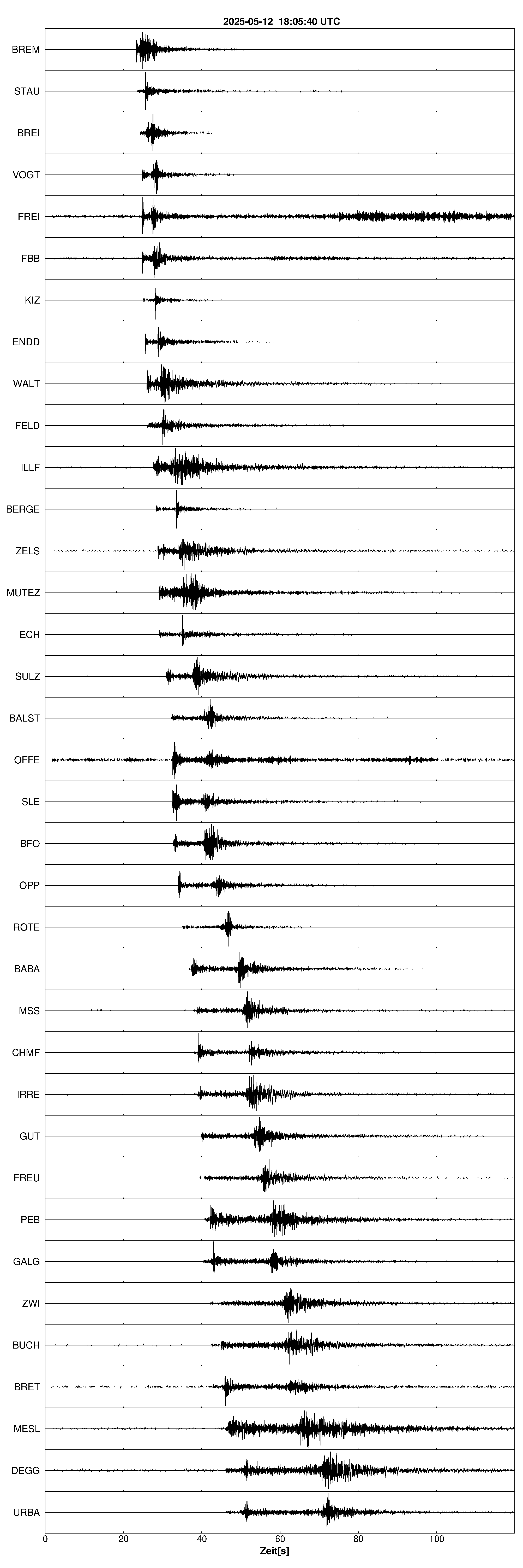 Pfadnavigation Startseite Geologischer Dienst Erdbeben Aktuelle Erdbeben Erdbeben bei Hartheim am Rhein, Lkrs. Breisgau-H., BW Teilen Erdbeben bei Hartheim am Rhein, Lkrs. Breisgau-H., BW Erdbeben bei: Hartheim am Rhein, Lkrs. Breisgau-H., BW Datum/Uhrzeit: am 12.05.2025 um 20:06 Uhr Ortszeit (MESZ) Stärke: 2.7 (Magnitude auf der Richter-Skala) Epizentrum: 47.92° N ㅤ 7.63° E Herdtiefe: ca. 11 km unter der Erdoberfläche Wahrnehmungen: 150 schwache Wahrnehmungen bis fast 50 km Entfernung Bemerkung: schwaches Erdbeben Seismogramme ausgewählter Erdbebenmessstationen: Erläuterungen: Datum/Uhrzeit:Datum und Zeit des Erdbebens in Ortszeit, also MEZ oder MESZ; Epizentrum:Punkt an der Erdoberfläche über dem Hypozentrum (Lage des Erdbebenherdes in der Tiefe); Magnitude:Erdbebenstärke auf der Richterskala (Lokalmagnitude ML); Herdtiefe:Tiefe des Erdbebens (Hypozentrums) in Kilometern unter NN. Seismogramme:Details zu den Erdbebenmessstationen finden sich im Kartenviewer des LGRB (Baden-Württemberg) und im Kartenviewer des LGB (Rheinland-Pfalz).