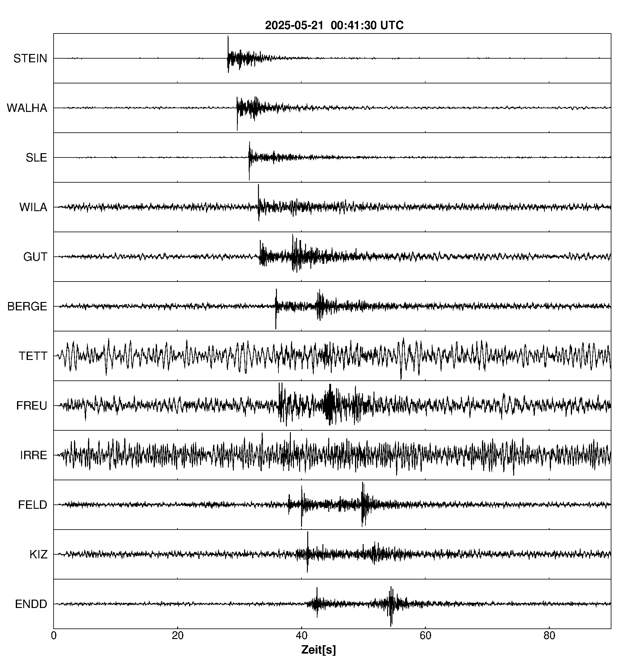 Pfadnavigation Startseite Geologischer Dienst Erdbeben Aktuelle Erdbeben Erdbeben bei Singen (Hohentwiel), Lkrs. Konstanz, BW Teilen Erdbeben bei Singen (Hohentwiel), Lkrs. Konstanz, BW Erdbeben bei: Singen (Hohentwiel), Lkrs. Konstanz, BW Datum/Uhrzeit: am 21.05.2025 um 02:41 Uhr Ortszeit (MESZ) Stärke: 0.9 (Magnitude auf der Richter-Skala) Epizentrum: 47.74° N ㅤ 8.88° E Herdtiefe: ca. 5 km unter der Erdoberfläche Bemerkung: sehr schwaches Erdbeben Seismogramme ausgewählter Erdbebenmessstationen: Erläuterungen: Datum/Uhrzeit:Datum und Zeit des Erdbebens in Ortszeit, also MEZ oder MESZ; Epizentrum:Punkt an der Erdoberfläche über dem Hypozentrum (Lage des Erdbebenherdes in der Tiefe); Magnitude:Erdbebenstärke auf der Richterskala (Lokalmagnitude ML); Herdtiefe:Tiefe des Erdbebens (Hypozentrums) in Kilometern unter NN. Seismogramme:Details zu den Erdbebenmessstationen finden sich im Kartenviewer des LGRB (Baden-Württemberg) und im Kartenviewer des LGB (Rheinland-Pfalz).