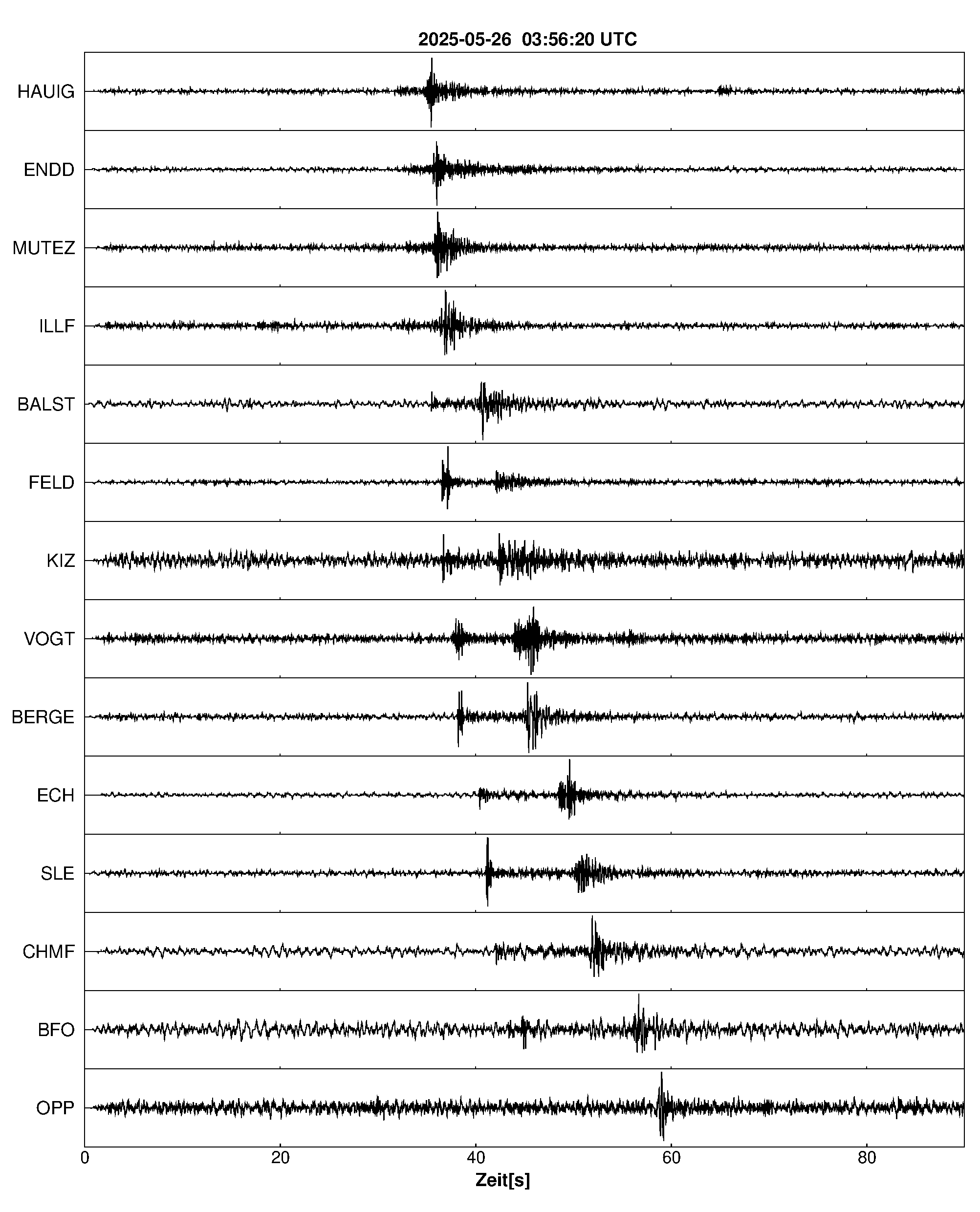 Pfadnavigation Startseite Geologischer Dienst Erdbeben Aktuelle Erdbeben Erdbeben bei Rosenau, Dep. Haut-Rhin, F Teilen Erdbeben bei Rosenau, Dep. Haut-Rhin, F Erdbeben außerhalb von Baden-Württemberg und Rheinland-Pfalz:Die maßgeblichen Angaben veröffentlicht der lokal zuständige Erdbebendienst. Erdbeben bei: Rosenau, Dep. Haut-Rhin, F Datum/Uhrzeit: am 26.05.2025 um 05:56 Uhr Ortszeit (MESZ) Stärke: 0.9 (Magnitude auf der Richter-Skala) Epizentrum: 47.65° N ㅤ 7.53° E Herdtiefe: ca. 19 km unter der Erdoberfläche Bemerkung: sehr schwaches Erdbeben Seismogramme ausgewählter Erdbebenmessstationen: Erläuterungen: Datum/Uhrzeit:Datum und Zeit des Erdbebens in Ortszeit, also MEZ oder MESZ; Epizentrum:Punkt an der Erdoberfläche über dem Hypozentrum (Lage des Erdbebenherdes in der Tiefe); Magnitude:Erdbebenstärke auf der Richterskala (Lokalmagnitude ML); Herdtiefe:Tiefe des Erdbebens (Hypozentrums) in Kilometern unter NN. Seismogramme:Details zu den Erdbebenmessstationen finden sich im Kartenviewer des LGRB (Baden-Württemberg) und im Kartenviewer des LGB (Rheinland-Pfalz).