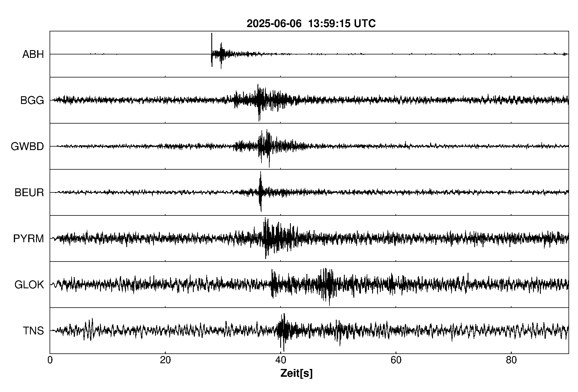 Pfadnavigation Startseite Geologischer Dienst Erdbeben Aktuelle Erdbeben Erdbeben bei Mengerschied, Rhein-Hunsrück-Kreis, RP Teilen Erdbeben bei Mengerschied, Rhein-Hunsrück-Kreis, RP Erdbeben bei: Mengerschied, Rhein-Hunsrück-Kreis, RP Datum/Uhrzeit: am 06.06.2025 um 15:59 Uhr Ortszeit (MESZ) Stärke: 0.9 (Magnitude auf der Richter-Skala) Epizentrum: 49.92° N ㅤ 7.51° E Herdtiefe: ca. 11 km unter der Erdoberfläche Bemerkung: sehr schwaches Erdbeben Seismogramme ausgewählter Erdbebenmessstationen: Erläuterungen: Datum/Uhrzeit:Datum und Zeit des Erdbebens in Ortszeit, also MEZ oder MESZ; Epizentrum:Punkt an der Erdoberfläche über dem Hypozentrum (Lage des Erdbebenherdes in der Tiefe); Magnitude:Erdbebenstärke auf der Richterskala (Lokalmagnitude ML); Herdtiefe:Tiefe des Erdbebens (Hypozentrums) in Kilometern unter NN. Seismogramme:Details zu den Erdbebenmessstationen finden sich im Kartenviewer des LGRB (Baden-Württemberg) und im Kartenviewer des LGB (Rheinland-Pfalz).
