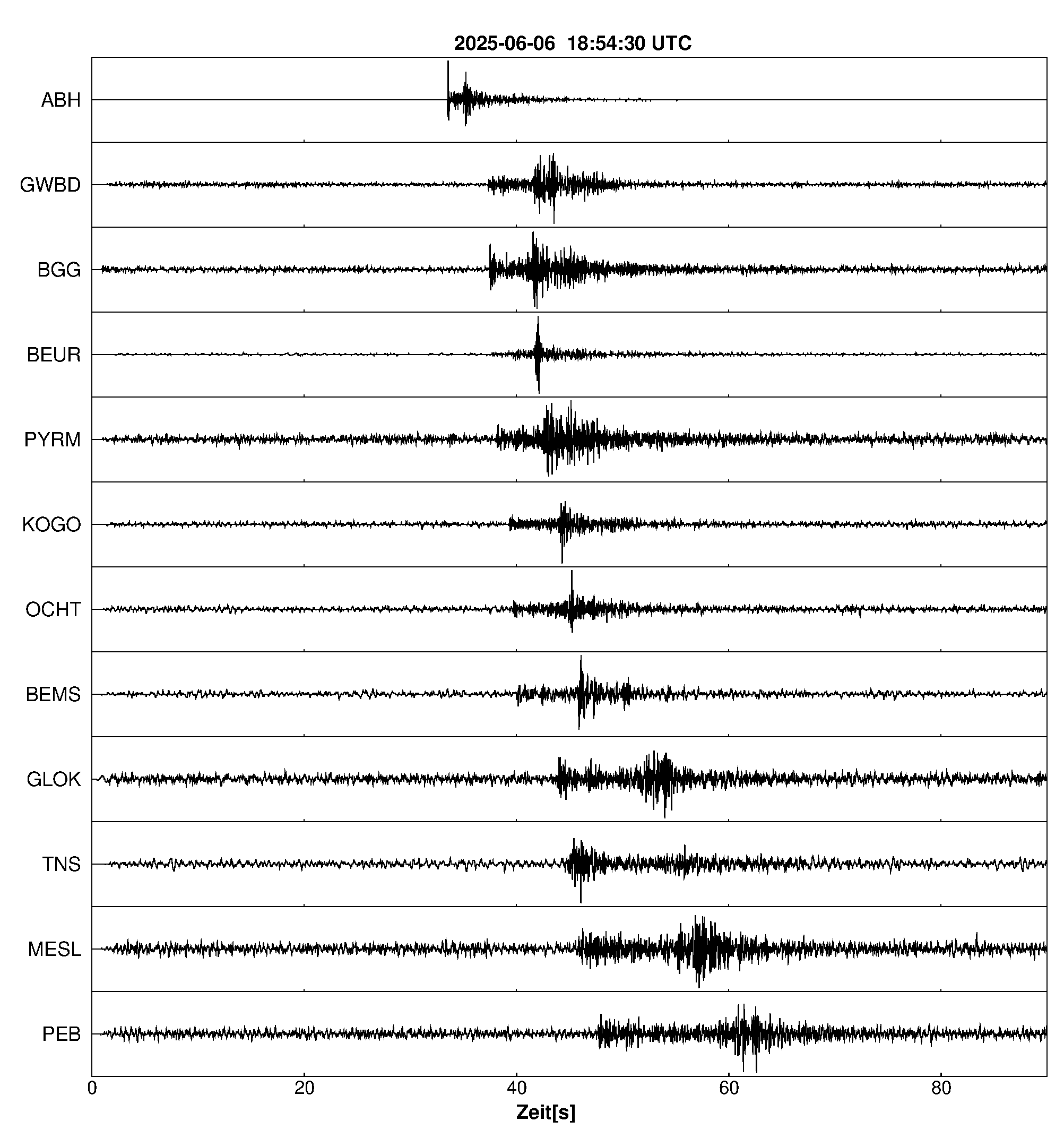 Pfadnavigation Startseite Geologischer Dienst Erdbeben Aktuelle Erdbeben Erdbeben bei Mengerschied, Rhein-Hunsrück-Kreis, RP Teilen Erdbeben bei Mengerschied, Rhein-Hunsrück-Kreis, RP Erdbeben bei: Mengerschied, Rhein-Hunsrück-Kreis, RP Datum/Uhrzeit: am 06.06.2025 um 20:55 Uhr Ortszeit (MESZ) Stärke: 1.0 (Magnitude auf der Richter-Skala) Epizentrum: 49.92° N ㅤ 7.52° E Herdtiefe: ca. 11 km unter der Erdoberfläche Bemerkung: sehr schwaches Erdbeben Seismogramme ausgewählter Erdbebenmessstationen: Erläuterungen: Datum/Uhrzeit:Datum und Zeit des Erdbebens in Ortszeit, also MEZ oder MESZ; Epizentrum:Punkt an der Erdoberfläche über dem Hypozentrum (Lage des Erdbebenherdes in der Tiefe); Magnitude:Erdbebenstärke auf der Richterskala (Lokalmagnitude ML); Herdtiefe:Tiefe des Erdbebens (Hypozentrums) in Kilometern unter NN. Seismogramme:Details zu den Erdbebenmessstationen finden sich im Kartenviewer des LGRB (Baden-Württemberg) und im Kartenviewer des LGB (Rheinland-Pfalz).