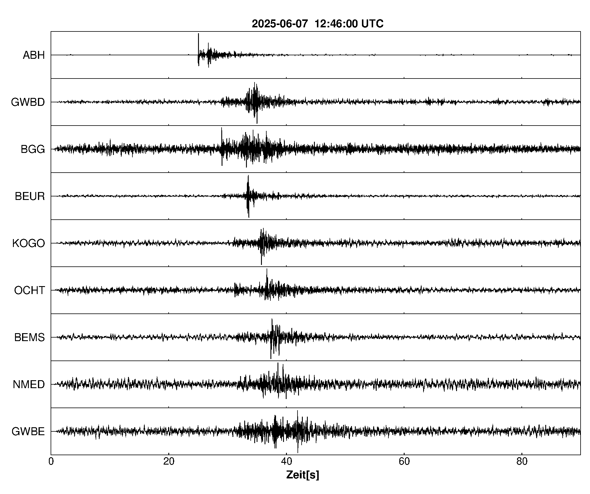 Pfadnavigation Startseite Geologischer Dienst Erdbeben Aktuelle Erdbeben Erdbeben bei Mengerschied, Rhein-Hunsrück-Kreis, RP Teilen Erdbeben bei Mengerschied, Rhein-Hunsrück-Kreis, RP Erdbeben bei: Mengerschied, Rhein-Hunsrück-Kreis, RP Datum/Uhrzeit: am 07.06.2025 um 14:46 Uhr Ortszeit (MESZ) Stärke: 1.0 (Magnitude auf der Richter-Skala) Epizentrum: 49.92° N ㅤ 7.52° E Herdtiefe: ca. 11 km unter der Erdoberfläche Bemerkung: sehr schwaches Erdbeben Seismogramme ausgewählter Erdbebenmessstationen: Erläuterungen: Datum/Uhrzeit:Datum und Zeit des Erdbebens in Ortszeit, also MEZ oder MESZ; Epizentrum:Punkt an der Erdoberfläche über dem Hypozentrum (Lage des Erdbebenherdes in der Tiefe); Magnitude:Erdbebenstärke auf der Richterskala (Lokalmagnitude ML); Herdtiefe:Tiefe des Erdbebens (Hypozentrums) in Kilometern unter NN. Seismogramme:Details zu den Erdbebenmessstationen finden sich im Kartenviewer des LGRB (Baden-Württemberg) und im Kartenviewer des LGB (Rheinland-Pfalz).