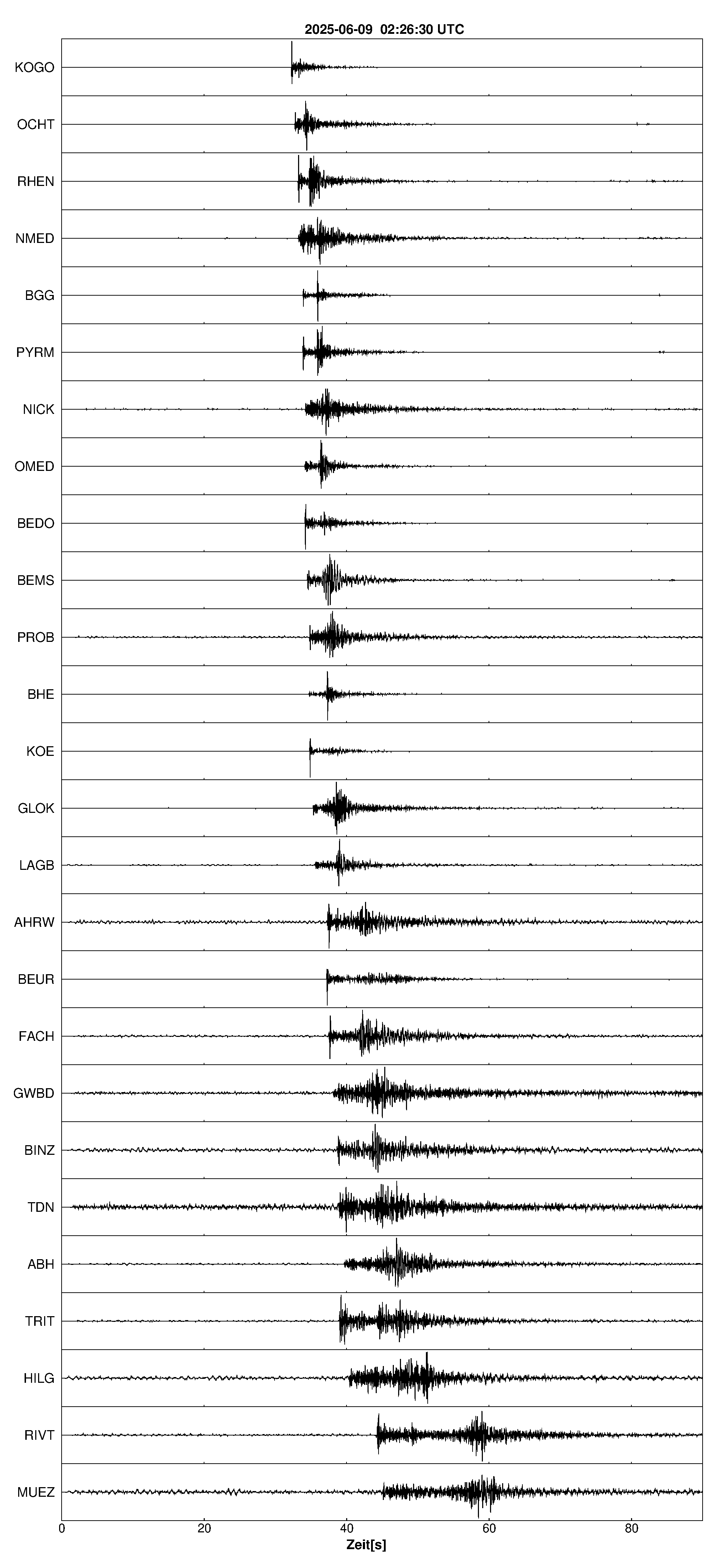 Pfadnavigation Startseite Geologischer Dienst Erdbeben Aktuelle Erdbeben Erdbeben bei Kobern-Gondorf, Lkrs. Mayen-Koblenz, RP Teilen Erdbeben bei Kobern-Gondorf, Lkrs. Mayen-Koblenz, RP Erdbeben bei: Kobern-Gondorf, Lkrs. Mayen-Koblenz, RP Datum/Uhrzeit: am 09.06.2025 um 04:27 Uhr Ortszeit (MESZ) Stärke: 1.4 (Magnitude auf der Richter-Skala) Epizentrum: 50.32° N ㅤ 7.46° E Herdtiefe: ca. 7 km unter der Erdoberfläche Bemerkung: sehr schwaches Erdbeben Seismogramme ausgewählter Erdbebenmessstationen: Erläuterungen: Datum/Uhrzeit:Datum und Zeit des Erdbebens in Ortszeit, also MEZ oder MESZ; Epizentrum:Punkt an der Erdoberfläche über dem Hypozentrum (Lage des Erdbebenherdes in der Tiefe); Magnitude:Erdbebenstärke auf der Richterskala (Lokalmagnitude ML); Herdtiefe:Tiefe des Erdbebens (Hypozentrums) in Kilometern unter NN. Seismogramme:Details zu den Erdbebenmessstationen finden sich im Kartenviewer des LGRB (Baden-Württemberg) und im Kartenviewer des LGB (Rheinland-Pfalz).