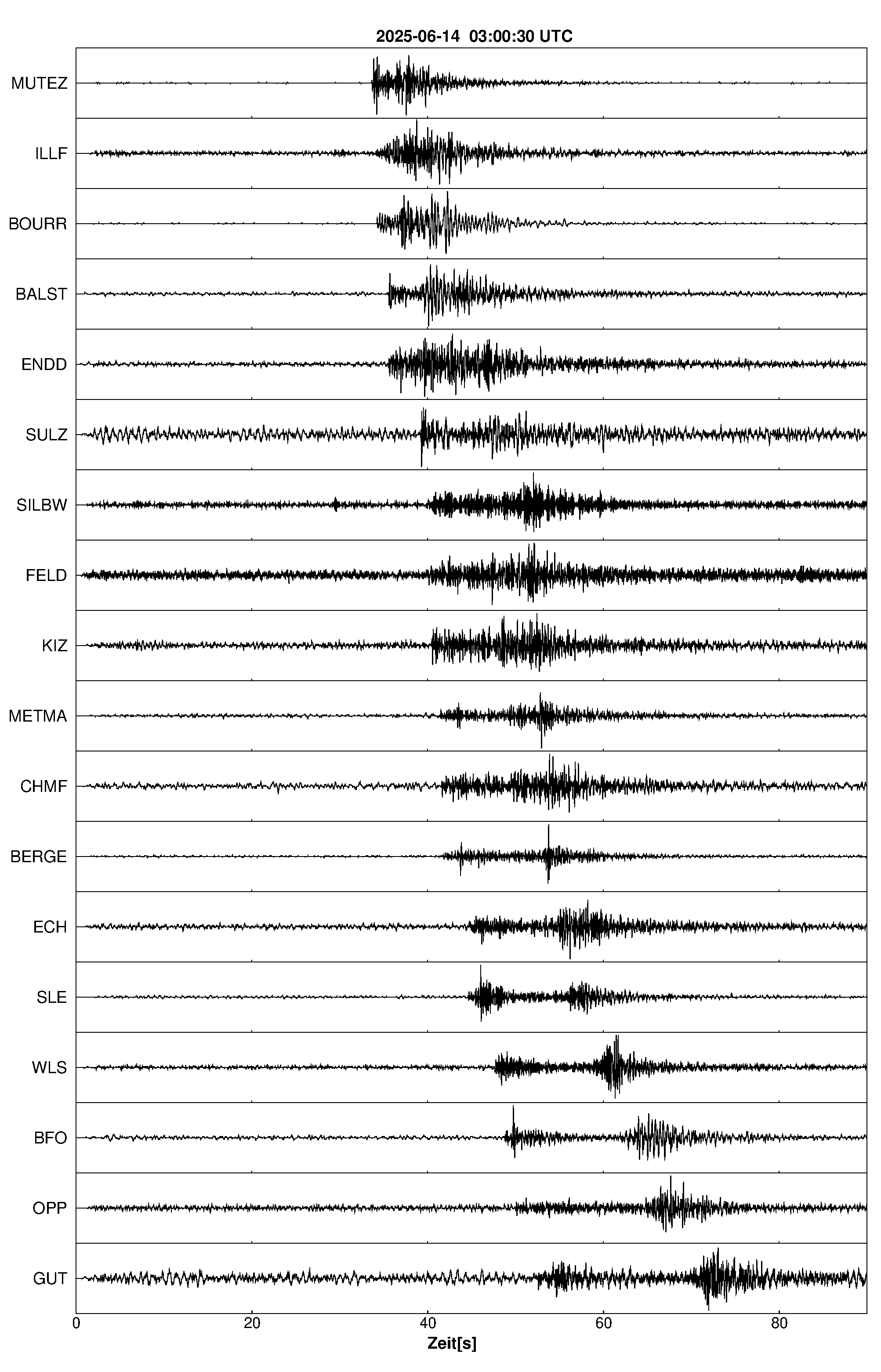 Pfadnavigation Startseite Geologischer Dienst Erdbeben Aktuelle Erdbeben Erdbeben bei Muespach-le-Haut, Dep. Haut-Rhin, F Teilen Erdbeben bei Muespach-le-Haut, Dep. Haut-Rhin, F Erdbeben außerhalb von Baden-Württemberg und Rheinland-Pfalz:Die maßgeblichen Angaben veröffentlicht der lokal zuständige Erdbebendienst. Erdbeben bei: Muespach-le-Haut, Dep. Haut-Rhin, F Datum/Uhrzeit: am 14.06.2025 um 05:01 Uhr Ortszeit (MESZ) Stärke: 1.3 (Magnitude auf der Richter-Skala) Epizentrum: 47.53° N ㅤ 7.42° E Herdtiefe: ca. 6 km unter der Erdoberfläche Bemerkung: sehr schwaches Erdbeben Seismogramme ausgewählter Erdbebenmessstationen: Erläuterungen: Datum/Uhrzeit:Datum und Zeit des Erdbebens in Ortszeit, also MEZ oder MESZ; Epizentrum:Punkt an der Erdoberfläche über dem Hypozentrum (Lage des Erdbebenherdes in der Tiefe); Magnitude:Erdbebenstärke auf der Richterskala (Lokalmagnitude ML); Herdtiefe:Tiefe des Erdbebens (Hypozentrums) in Kilometern unter NN. Seismogramme:Details zu den Erdbebenmessstationen finden sich im Kartenviewer des LGRB (Baden-Württemberg) und im Kartenviewer des LGB (Rheinland-Pfalz).