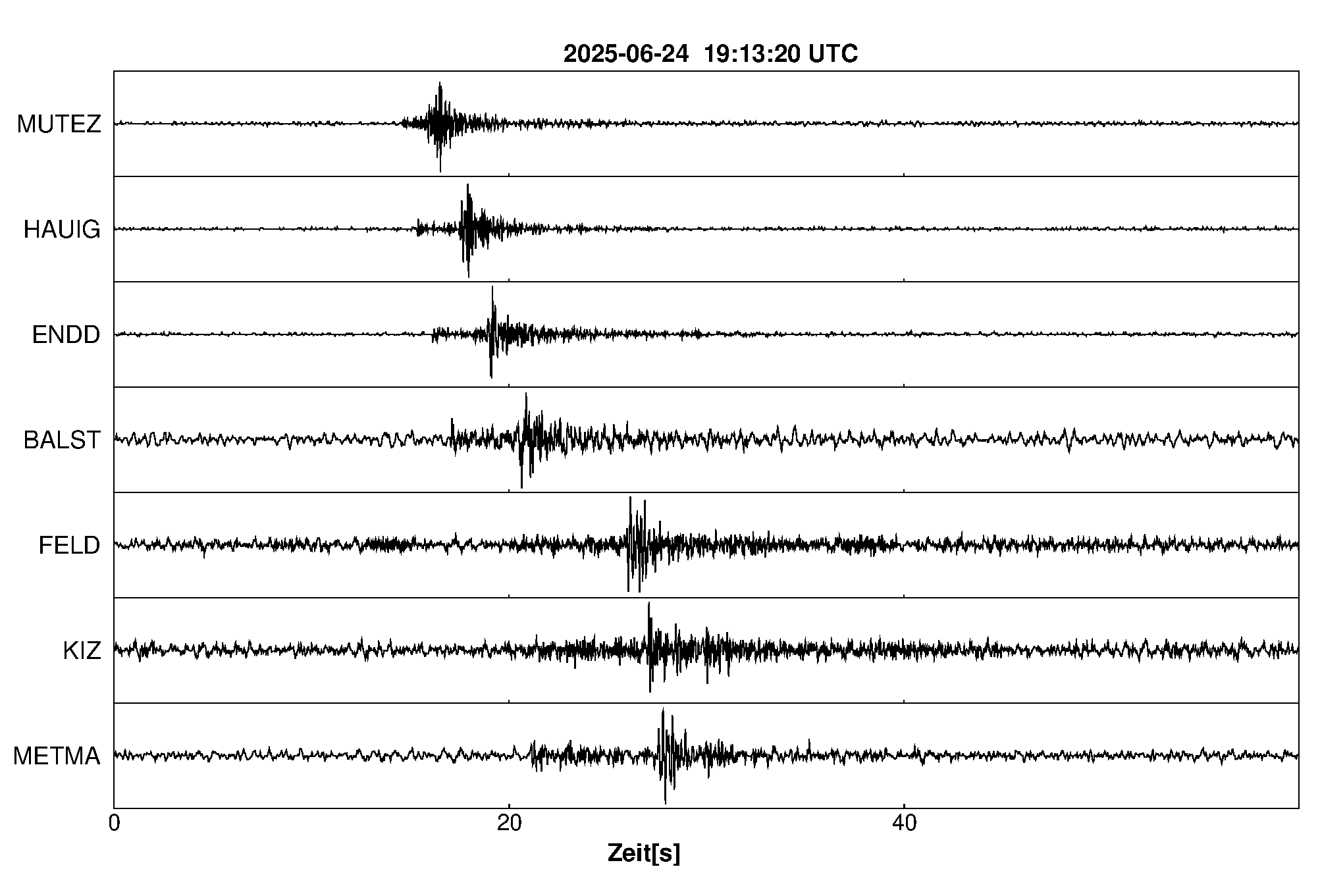 Pfadnavigation Startseite Geologischer Dienst Erdbeben Aktuelle Erdbeben Erdbeben bei Basel, Kt. Basel-Stadt, CH Teilen Erdbeben bei Basel, Kt. Basel-Stadt, CH Erdbeben außerhalb von Baden-Württemberg und Rheinland-Pfalz:Die maßgeblichen Angaben veröffentlicht der lokal zuständige Erdbebendienst. Erdbeben bei: Basel, Kt. Basel-Stadt, CH Datum/Uhrzeit: am 24.06.2025 um 21:13 Uhr Ortszeit (MESZ) Stärke: 0.7 (Magnitude auf der Richter-Skala) Epizentrum: 47.56° N ㅤ 7.61° E Herdtiefe: ca. 12 km unter der Erdoberfläche Bemerkung: sehr schwaches Erdbeben Seismogramme ausgewählter Erdbebenmessstationen: Erläuterungen: Datum/Uhrzeit:Datum und Zeit des Erdbebens in Ortszeit, also MEZ oder MESZ; Epizentrum:Punkt an der Erdoberfläche über dem Hypozentrum (Lage des Erdbebenherdes in der Tiefe); Magnitude:Erdbebenstärke auf der Richterskala (Lokalmagnitude ML); Herdtiefe:Tiefe des Erdbebens (Hypozentrums) in Kilometern unter NN. Seismogramme:Details zu den Erdbebenmessstationen finden sich im Kartenviewer des LGRB (Baden-Württemberg) und im Kartenviewer des LGB (Rheinland-Pfalz).