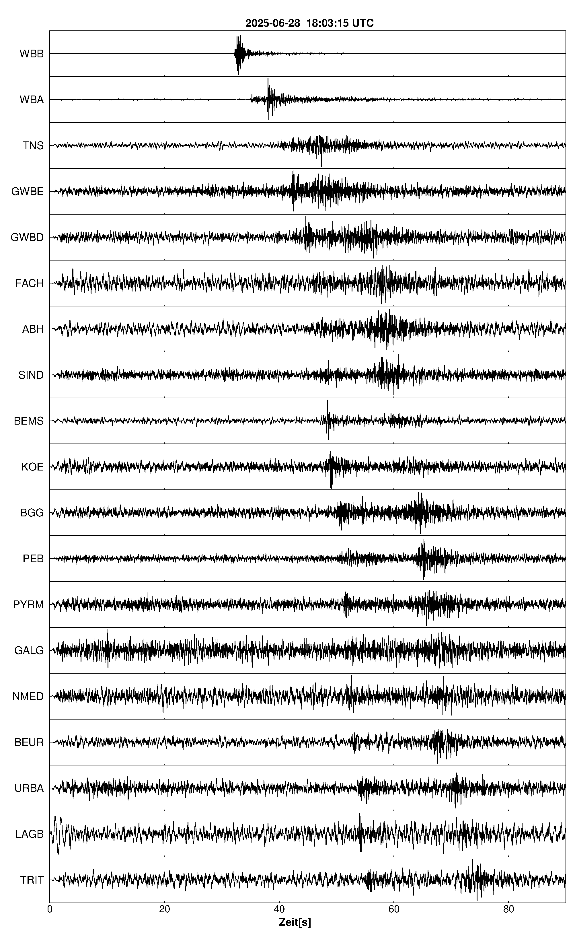Pfadnavigation Startseite Geologischer Dienst Erdbeben Aktuelle Erdbeben Erdbeben bei Mühltal, Lkrs. Darmstadt-Dieburg, HS Teilen Erdbeben bei Mühltal, Lkrs. Darmstadt-Dieburg, HS Erdbeben außerhalb von Baden-Württemberg und Rheinland-Pfalz:Die maßgeblichen Angaben veröffentlicht der lokal zuständige Erdbebendienst. Erdbeben bei: Mühltal, Lkrs. Darmstadt-Dieburg, HS Datum/Uhrzeit: am 28.06.2025 um 20:03 Uhr Ortszeit (MESZ) Stärke: 1.0 (Magnitude auf der Richter-Skala) Epizentrum: 49.83° N ㅤ 8.69° E Herdtiefe: ca. 3 km unter der Erdoberfläche Bemerkung: sehr schwaches Erdbeben Seismogramme ausgewählter Erdbebenmessstationen: Erläuterungen: Datum/Uhrzeit:Datum und Zeit des Erdbebens in Ortszeit, also MEZ oder MESZ; Epizentrum:Punkt an der Erdoberfläche über dem Hypozentrum (Lage des Erdbebenherdes in der Tiefe); Magnitude:Erdbebenstärke auf der Richterskala (Lokalmagnitude ML); Herdtiefe:Tiefe des Erdbebens (Hypozentrums) in Kilometern unter NN. Seismogramme:Details zu den Erdbebenmessstationen finden sich im Kartenviewer des LGRB (Baden-Württemberg) und im Kartenviewer des LGB (Rheinland-Pfalz).