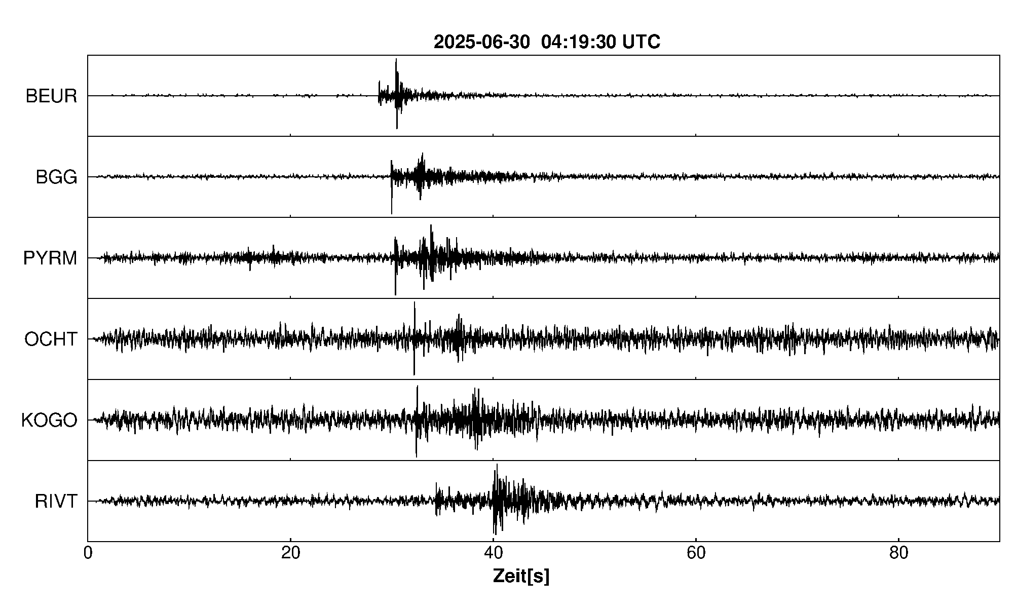 Pfadnavigation Startseite Geologischer Dienst Erdbeben Aktuelle Erdbeben Erdbeben bei Zell (Mosel), Lkrs. Cochem-Zell, RP Teilen Erdbeben bei Zell (Mosel), Lkrs. Cochem-Zell, RP Erdbeben bei: Zell (Mosel), Lkrs. Cochem-Zell, RP Datum/Uhrzeit: am 30.06.2025 um 06:19 Uhr Ortszeit (MESZ) Stärke: 0.7 (Magnitude auf der Richter-Skala) Epizentrum: 50.03° N ㅤ 7.22° E Herdtiefe: ca. 9 km unter der Erdoberfläche Bemerkung: sehr schwaches Erdbeben Seismogramme ausgewählter Erdbebenmessstationen: Erläuterungen: Datum/Uhrzeit:Datum und Zeit des Erdbebens in Ortszeit, also MEZ oder MESZ; Epizentrum:Punkt an der Erdoberfläche über dem Hypozentrum (Lage des Erdbebenherdes in der Tiefe); Magnitude:Erdbebenstärke auf der Richterskala (Lokalmagnitude ML); Herdtiefe:Tiefe des Erdbebens (Hypozentrums) in Kilometern unter NN. Seismogramme:Details zu den Erdbebenmessstationen finden sich im Kartenviewer des LGRB (Baden-Württemberg) und im Kartenviewer des LGB (Rheinland-Pfalz).