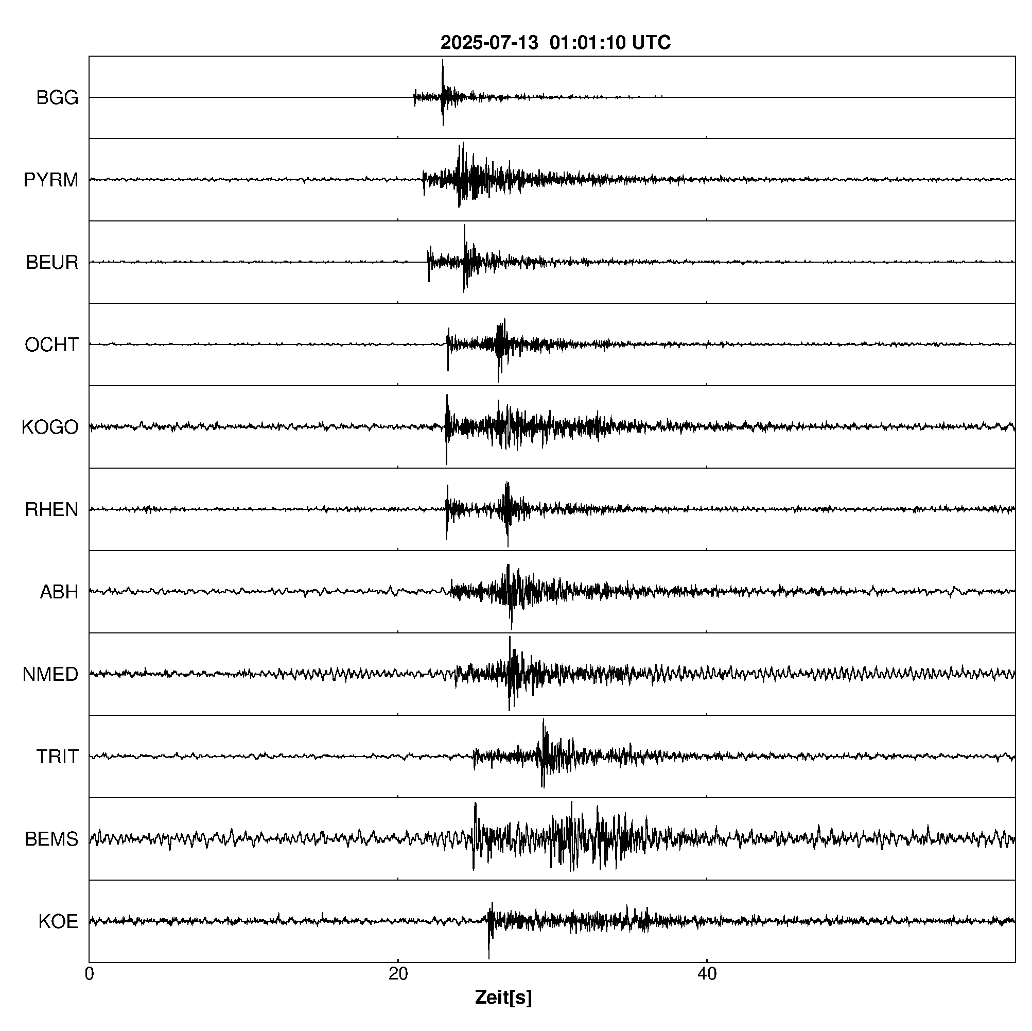 Pfadnavigation Startseite Geologischer Dienst Erdbeben Aktuelle Erdbeben Erdbeben bei Mörsdorf, Rhein-Hunsrück-Kreis, RP Teilen Erdbeben bei Mörsdorf, Rhein-Hunsrück-Kreis, RP Erdbeben bei: Mörsdorf, Rhein-Hunsrück-Kreis, RP Datum/Uhrzeit: am 13.07.2025 um 03:01 Uhr Ortszeit (MESZ) Stärke: 0.6 (Magnitude auf der Richter-Skala) Epizentrum: 50.1° N ㅤ 7.35° E Herdtiefe: ca. 11 km unter der Erdoberfläche Bemerkung: sehr schwaches Erdbeben Seismogramme ausgewählter Erdbebenmessstationen: Erläuterungen: Datum/Uhrzeit:Datum und Zeit des Erdbebens in Ortszeit, also MEZ oder MESZ; Epizentrum:Punkt an der Erdoberfläche über dem Hypozentrum (Lage des Erdbebenherdes in der Tiefe); Magnitude:Erdbebenstärke auf der Richterskala (Lokalmagnitude ML); Herdtiefe:Tiefe des Erdbebens (Hypozentrums) in Kilometern unter NN. Seismogramme:Details zu den Erdbebenmessstationen finden sich im Kartenviewer des LGRB (Baden-Württemberg) und im Kartenviewer des LGB (Rheinland-Pfalz).