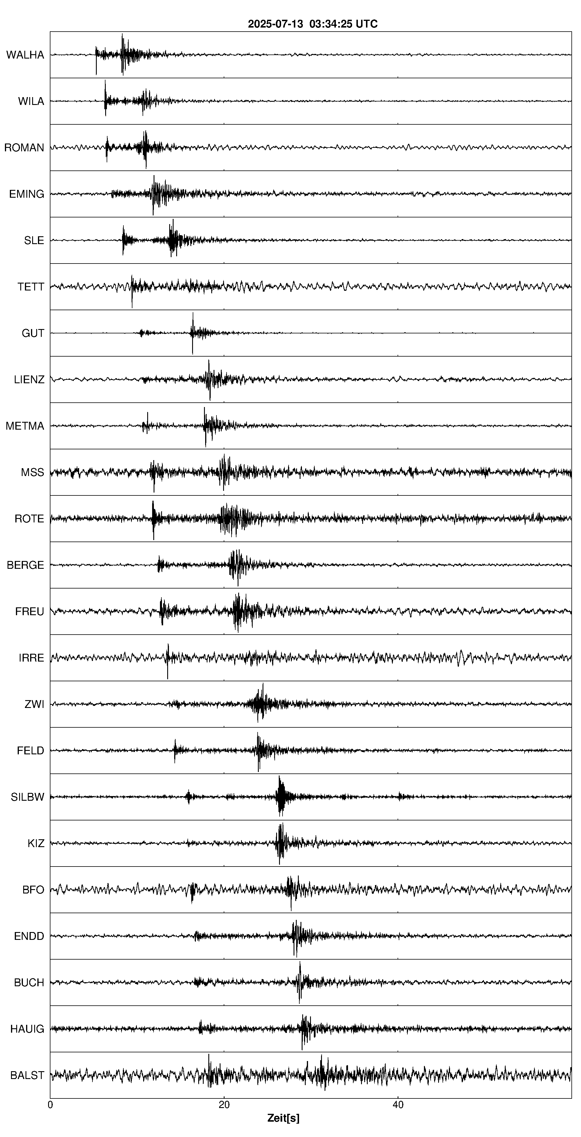 Pfadnavigation Startseite Geologischer Dienst Erdbeben Aktuelle Erdbeben Erdbeben bei Homburg, Kt. Thurgau, CH Teilen Erdbeben bei Homburg, Kt. Thurgau, CH Erdbeben außerhalb von Baden-Württemberg und Rheinland-Pfalz:Die maßgeblichen Angaben veröffentlicht der lokal zuständige Erdbebendienst. Erdbeben bei: Homburg, Kt. Thurgau, CH Datum/Uhrzeit: am 13.07.2025 um 05:34 Uhr Ortszeit (MESZ) Stärke: 1.0 (Magnitude auf der Richter-Skala) Epizentrum: 47.63° N ㅤ 8.99° E Herdtiefe: ca. 20 km unter der Erdoberfläche Bemerkung: sehr schwaches Erdbeben Seismogramme ausgewählter Erdbebenmessstationen: Erläuterungen: Datum/Uhrzeit:Datum und Zeit des Erdbebens in Ortszeit, also MEZ oder MESZ; Epizentrum:Punkt an der Erdoberfläche über dem Hypozentrum (Lage des Erdbebenherdes in der Tiefe); Magnitude:Erdbebenstärke auf der Richterskala (Lokalmagnitude ML); Herdtiefe:Tiefe des Erdbebens (Hypozentrums) in Kilometern unter NN. Seismogramme:Details zu den Erdbebenmessstationen finden sich im Kartenviewer des LGRB (Baden-Württemberg) und im Kartenviewer des LGB (Rheinland-Pfalz).