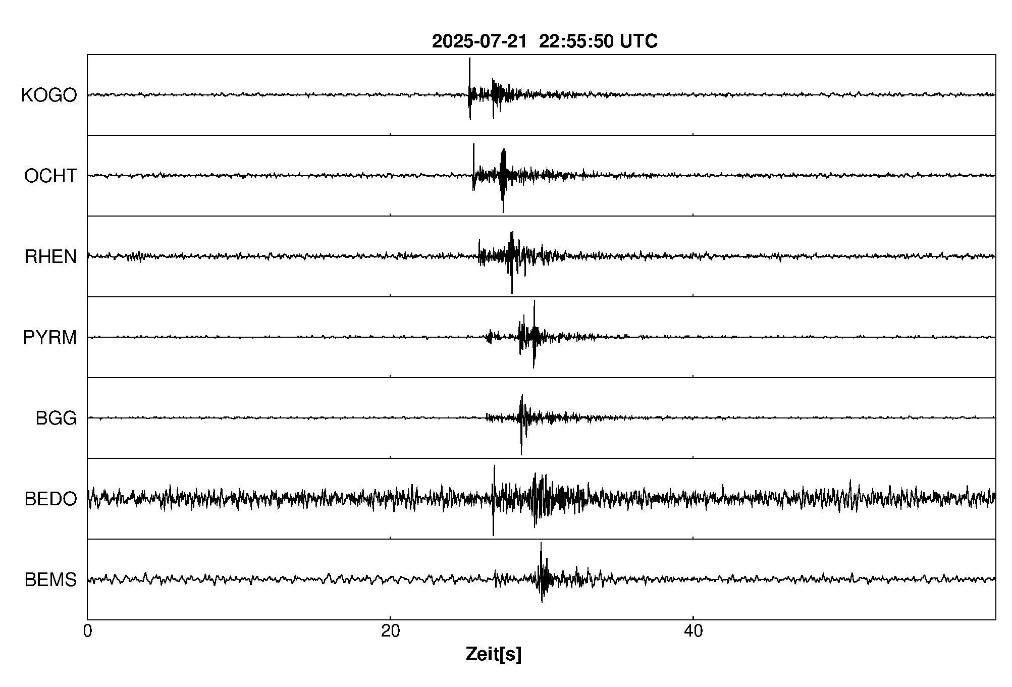 Pfadnavigation Startseite Geologischer Dienst Erdbeben Aktuelle Erdbeben Erdbeben bei Kobern-Gondorf, Lkrs. Mayen-Koblenz, RP Teilen Erdbeben bei Kobern-Gondorf, Lkrs. Mayen-Koblenz, RP Erdbeben bei: Kobern-Gondorf, Lkrs. Mayen-Koblenz, RP Datum/Uhrzeit: am 22.07.2025 um 00:56 Uhr Ortszeit (MESZ) Stärke: 0.6 (Magnitude auf der Richter-Skala) Epizentrum: 50.32° N ㅤ 7.45° E Herdtiefe: ca. 13 km unter der Erdoberfläche Bemerkung: sehr schwaches Erdbeben Seismogramme ausgewählter Erdbebenmessstationen: Erläuterungen: Datum/Uhrzeit:Datum und Zeit des Erdbebens in Ortszeit, also MEZ oder MESZ; Epizentrum:Punkt an der Erdoberfläche über dem Hypozentrum (Lage des Erdbebenherdes in der Tiefe); Magnitude:Erdbebenstärke auf der Richterskala (Lokalmagnitude ML); Herdtiefe:Tiefe des Erdbebens (Hypozentrums) in Kilometern unter NN. Seismogramme:Details zu den Erdbebenmessstationen finden sich im Kartenviewer des LGRB (Baden-Württemberg) und im Kartenviewer des LGB (Rheinland-Pfalz).