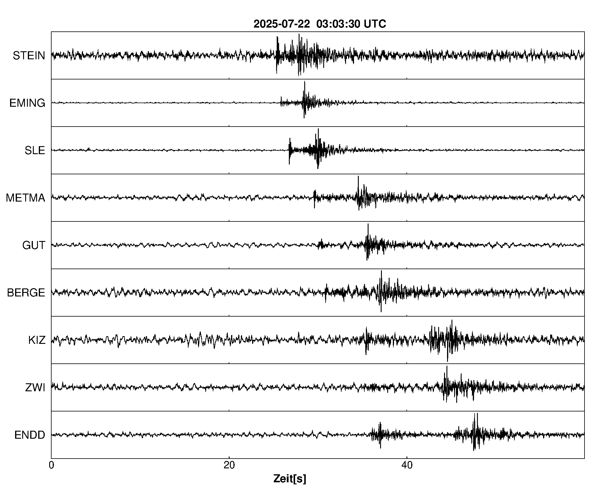 Pfadnavigation Startseite Geologischer Dienst Erdbeben Aktuelle Erdbeben Erdbeben bei Hilzingen, Lkrs. Konstanz, BW Teilen Erdbeben bei Hilzingen, Lkrs. Konstanz, BW Erdbeben bei: Hilzingen, Lkrs. Konstanz, BW Datum/Uhrzeit: am 22.07.2025 um 05:03 Uhr Ortszeit (MESZ) Stärke: 1.1 (Magnitude auf der Richter-Skala) Epizentrum: 47.76° N ㅤ 8.79° E Herdtiefe: ca. 10 km unter der Erdoberfläche Bemerkung: sehr schwaches Erdbeben Seismogramme ausgewählter Erdbebenmessstationen: Erläuterungen: Datum/Uhrzeit:Datum und Zeit des Erdbebens in Ortszeit, also MEZ oder MESZ; Epizentrum:Punkt an der Erdoberfläche über dem Hypozentrum (Lage des Erdbebenherdes in der Tiefe); Magnitude:Erdbebenstärke auf der Richterskala (Lokalmagnitude ML); Herdtiefe:Tiefe des Erdbebens (Hypozentrums) in Kilometern unter NN. Seismogramme:Details zu den Erdbebenmessstationen finden sich im Kartenviewer des LGRB (Baden-Württemberg) und im Kartenviewer des LGB (Rheinland-Pfalz).