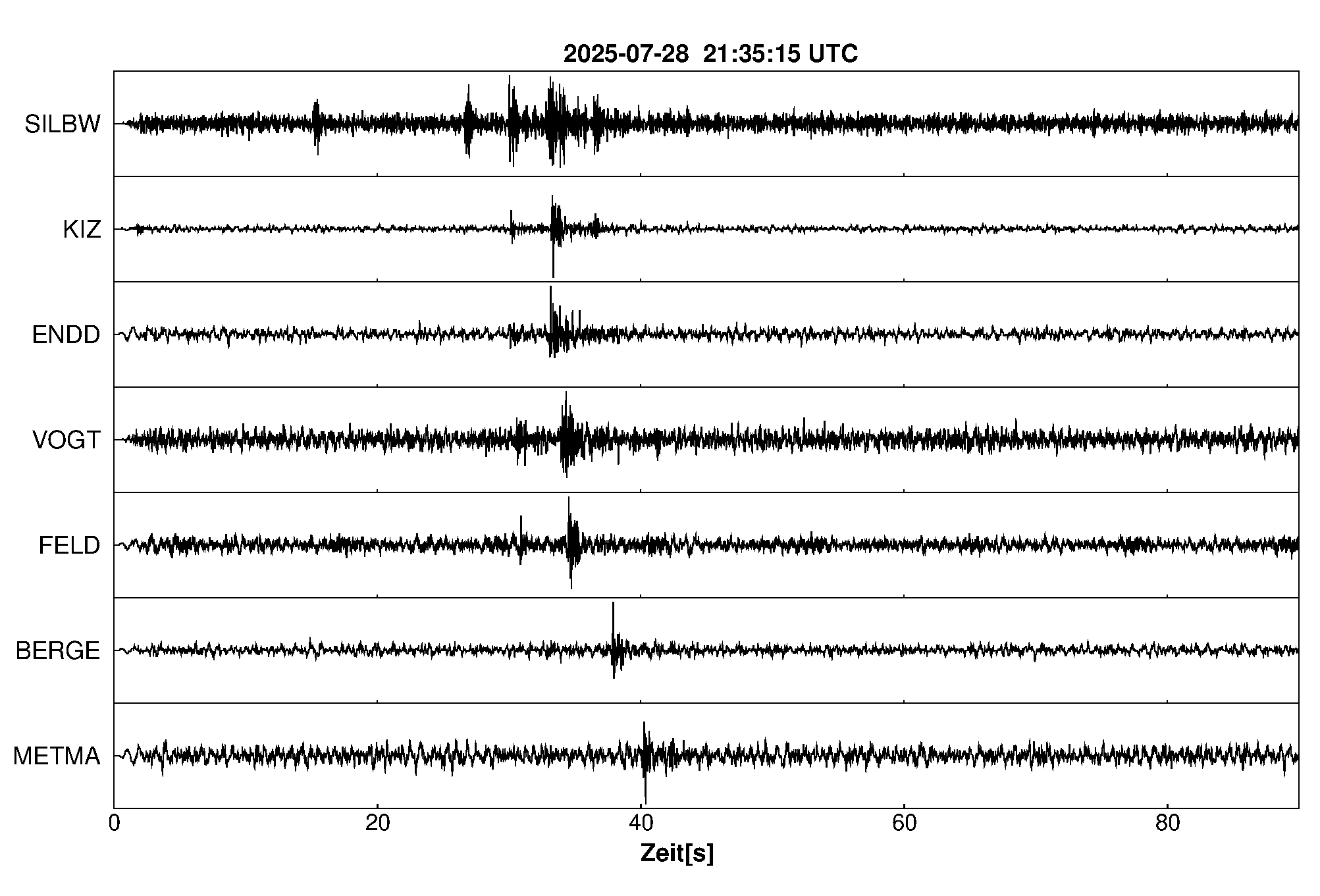 Pfadnavigation Startseite Geologischer Dienst Erdbeben Aktuelle Erdbeben Erdbeben bei Heitersheim, Lkrs. Breisgau-H., BW Teilen Erdbeben bei Heitersheim, Lkrs. Breisgau-H., BW Erdbeben bei: Heitersheim, Lkrs. Breisgau-H., BW Datum/Uhrzeit: am 28.07.2025 um 23:35 Uhr Ortszeit (MESZ) Stärke: 0.6 (Magnitude auf der Richter-Skala) Epizentrum: 47.89° N ㅤ 7.67° E Herdtiefe: ca. 15 km unter der Erdoberfläche Bemerkung: sehr schwaches Erdbeben Seismogramme ausgewählter Erdbebenmessstationen: Erläuterungen: Datum/Uhrzeit:Datum und Zeit des Erdbebens in Ortszeit, also MEZ oder MESZ; Epizentrum:Punkt an der Erdoberfläche über dem Hypozentrum (Lage des Erdbebenherdes in der Tiefe); Magnitude:Erdbebenstärke auf der Richterskala (Lokalmagnitude ML); Herdtiefe:Tiefe des Erdbebens (Hypozentrums) in Kilometern unter NN. Seismogramme:Details zu den Erdbebenmessstationen finden sich im Kartenviewer des LGRB (Baden-Württemberg) und im Kartenviewer des LGB (Rheinland-Pfalz).