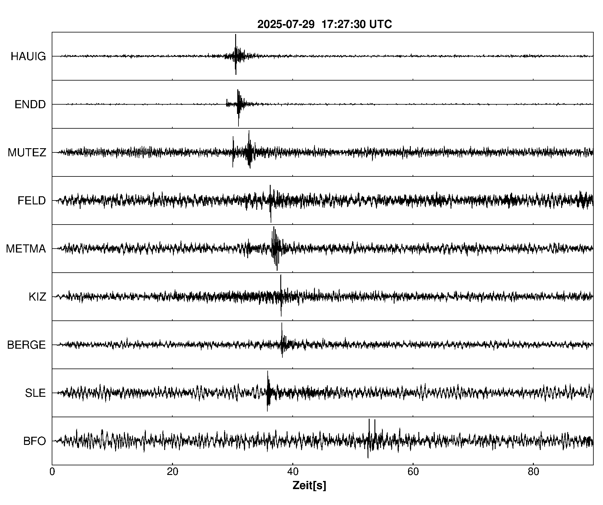 Pfadnavigation Startseite Geologischer Dienst Erdbeben Aktuelle Erdbeben Erdbeben bei Schopfheim, Lkrs. Lörrach, BW Teilen Erdbeben bei Schopfheim, Lkrs. Lörrach, BW Erdbeben bei: Schopfheim, Lkrs. Lörrach, BW Datum/Uhrzeit: am 29.07.2025 um 19:27 Uhr Ortszeit (MESZ) Stärke: 0.5 (Magnitude auf der Richter-Skala) Epizentrum: 47.62° N ㅤ 7.83° E Herdtiefe: ca. 5 km unter der Erdoberfläche Bemerkung: sehr schwaches Erdbeben Seismogramme ausgewählter Erdbebenmessstationen: Erläuterungen: Datum/Uhrzeit:Datum und Zeit des Erdbebens in Ortszeit, also MEZ oder MESZ; Epizentrum:Punkt an der Erdoberfläche über dem Hypozentrum (Lage des Erdbebenherdes in der Tiefe); Magnitude:Erdbebenstärke auf der Richterskala (Lokalmagnitude ML); Herdtiefe:Tiefe des Erdbebens (Hypozentrums) in Kilometern unter NN. Seismogramme:Details zu den Erdbebenmessstationen finden sich im Kartenviewer des LGRB (Baden-Württemberg) und im Kartenviewer des LGB (Rheinland-Pfalz).