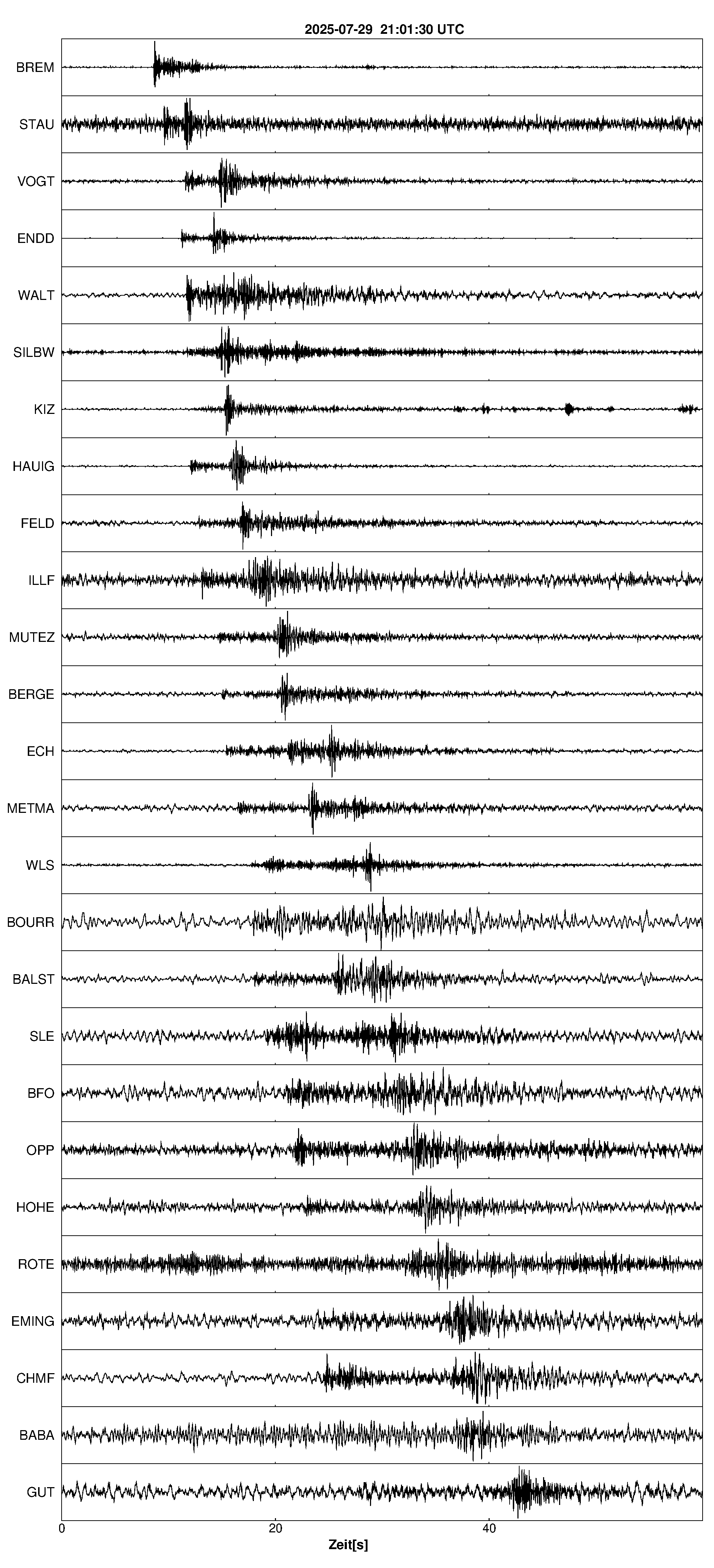 Pfadnavigation Startseite Geologischer Dienst Erdbeben Aktuelle Erdbeben Erdbeben bei Neuenburg am Rhein, Lkrs. Breisgau-H., BW Teilen Erdbeben bei Neuenburg am Rhein, Lkrs. Breisgau-H., BW Erdbeben bei: Neuenburg am Rhein, Lkrs. Breisgau-H., BW Datum/Uhrzeit: am 29.07.2025 um 23:01 Uhr Ortszeit (MESZ) Stärke: 1.0 (Magnitude auf der Richter-Skala) Epizentrum: 47.89° N ㅤ 7.58° E Herdtiefe: ca. 4 km unter der Erdoberfläche Bemerkung: sehr schwaches Erdbeben Seismogramme ausgewählter Erdbebenmessstationen: Erläuterungen: Datum/Uhrzeit:Datum und Zeit des Erdbebens in Ortszeit, also MEZ oder MESZ; Epizentrum:Punkt an der Erdoberfläche über dem Hypozentrum (Lage des Erdbebenherdes in der Tiefe); Magnitude:Erdbebenstärke auf der Richterskala (Lokalmagnitude ML); Herdtiefe:Tiefe des Erdbebens (Hypozentrums) in Kilometern unter NN. Seismogramme:Details zu den Erdbebenmessstationen finden sich im Kartenviewer des LGRB (Baden-Württemberg) und im Kartenviewer des LGB (Rheinland-Pfalz).