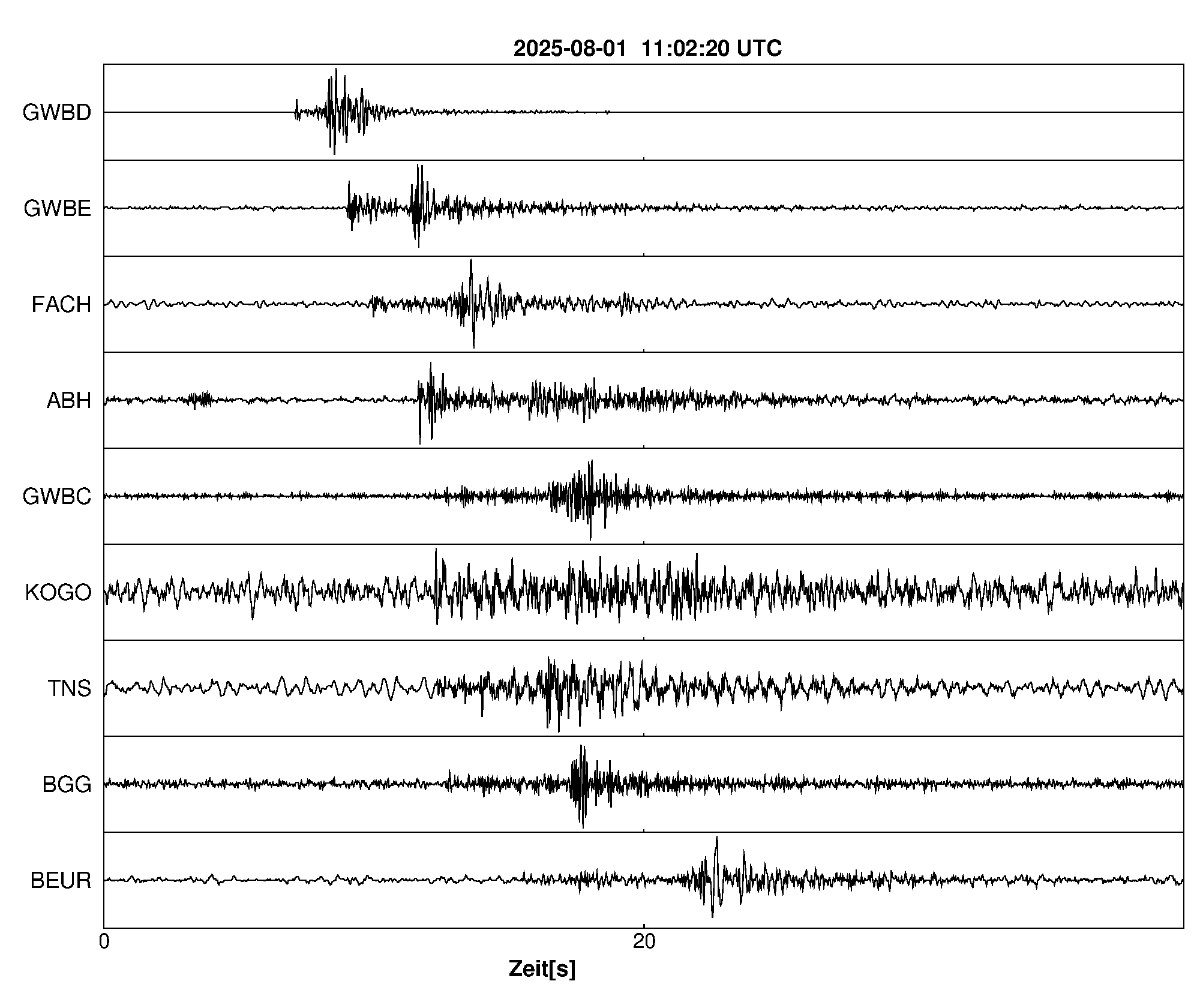 Pfadnavigation Startseite Geologischer Dienst Erdbeben Aktuelle Erdbeben Erdbeben bei Welterod, Rhein-Lahn-Kreis, RP Teilen Erdbeben bei Welterod, Rhein-Lahn-Kreis, RP Erdbeben bei: Welterod, Rhein-Lahn-Kreis, RP Datum/Uhrzeit: am 01.08.2025 um 13:02 Uhr Ortszeit (MESZ) Stärke: 0.9 (Magnitude auf der Richter-Skala) Epizentrum: 50.13° N ㅤ 7.91° E Herdtiefe: ca. 9 km unter der Erdoberfläche Bemerkung: sehr schwaches Erdbeben Seismogramme ausgewählter Erdbebenmessstationen: Erläuterungen: Datum/Uhrzeit:Datum und Zeit des Erdbebens in Ortszeit, also MEZ oder MESZ; Epizentrum:Punkt an der Erdoberfläche über dem Hypozentrum (Lage des Erdbebenherdes in der Tiefe); Magnitude:Erdbebenstärke auf der Richterskala (Lokalmagnitude ML); Herdtiefe:Tiefe des Erdbebens (Hypozentrums) in Kilometern unter NN. Seismogramme:Details zu den Erdbebenmessstationen finden sich im Kartenviewer des LGRB (Baden-Württemberg) und im Kartenviewer des LGB (Rheinland-Pfalz).