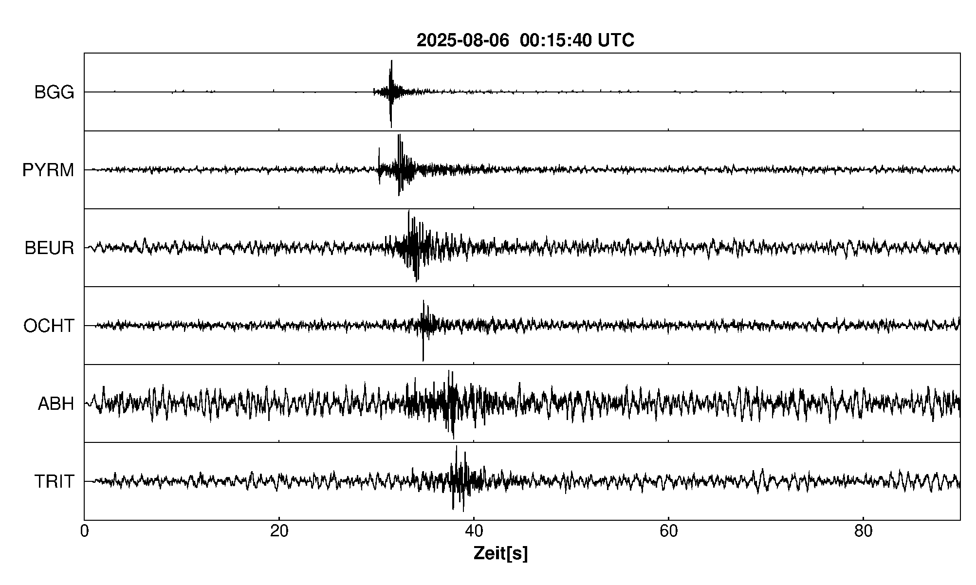 Pfadnavigation Startseite Geologischer Dienst Erdbeben Aktuelle Erdbeben Erdbeben bei Mörsdorf, Rhein-Hunsrück-Kreis, RP Teilen Erdbeben bei Mörsdorf, Rhein-Hunsrück-Kreis, RP Erdbeben bei: Mörsdorf, Rhein-Hunsrück-Kreis, RP Datum/Uhrzeit: am 06.08.2025 um 02:16 Uhr Ortszeit (MESZ) Stärke: 0.5 (Magnitude auf der Richter-Skala) Epizentrum: 50.13° N ㅤ 7.34° E Herdtiefe: ca. 11 km unter der Erdoberfläche Bemerkung: sehr schwaches Erdbeben Seismogramme ausgewählter Erdbebenmessstationen: Erläuterungen: Datum/Uhrzeit:Datum und Zeit des Erdbebens in Ortszeit, also MEZ oder MESZ; Epizentrum:Punkt an der Erdoberfläche über dem Hypozentrum (Lage des Erdbebenherdes in der Tiefe); Magnitude:Erdbebenstärke auf der Richterskala (Lokalmagnitude ML); Herdtiefe:Tiefe des Erdbebens (Hypozentrums) in Kilometern unter NN. Seismogramme:Details zu den Erdbebenmessstationen finden sich im Kartenviewer des LGRB (Baden-Württemberg) und im Kartenviewer des LGB (Rheinland-Pfalz).