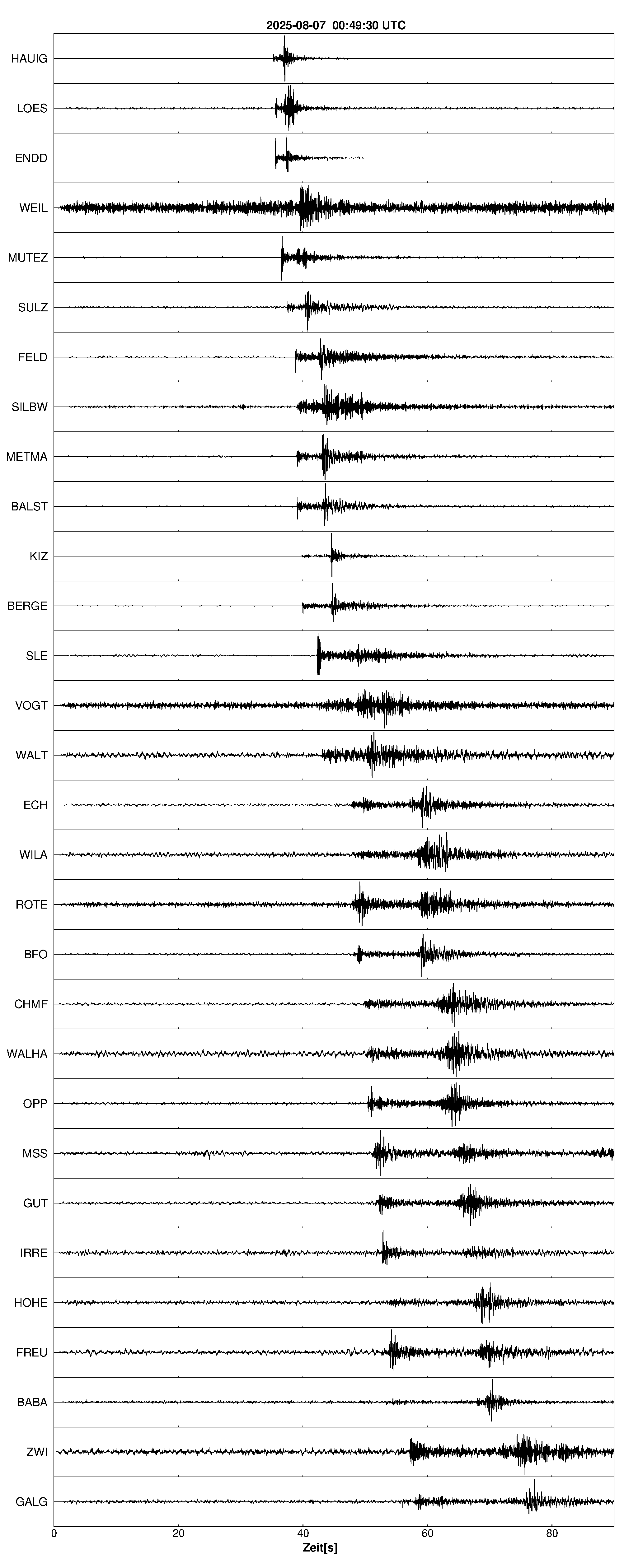 Pfadnavigation Startseite Geologischer Dienst Erdbeben Aktuelle Erdbeben Erdbeben bei Schopfheim, Lkrs. Lörrach, BW Teilen Erdbeben bei Schopfheim, Lkrs. Lörrach, BW Erdbeben bei: Schopfheim, Lkrs. Lörrach, BW Datum/Uhrzeit: am 07.08.2025 um 02:50 Uhr Ortszeit (MESZ) Stärke: 1.4 (Magnitude auf der Richter-Skala) Epizentrum: 47.62° N ㅤ 7.83° E Herdtiefe: ca. 5 km unter der Erdoberfläche Bemerkung: sehr schwaches Erdbeben Seismogramme ausgewählter Erdbebenmessstationen: Erläuterungen: Datum/Uhrzeit:Datum und Zeit des Erdbebens in Ortszeit, also MEZ oder MESZ; Epizentrum:Punkt an der Erdoberfläche über dem Hypozentrum (Lage des Erdbebenherdes in der Tiefe); Magnitude:Erdbebenstärke auf der Richterskala (Lokalmagnitude ML); Herdtiefe:Tiefe des Erdbebens (Hypozentrums) in Kilometern unter NN. Seismogramme:Details zu den Erdbebenmessstationen finden sich im Kartenviewer des LGRB (Baden-Württemberg) und im Kartenviewer des LGB (Rheinland-Pfalz).
