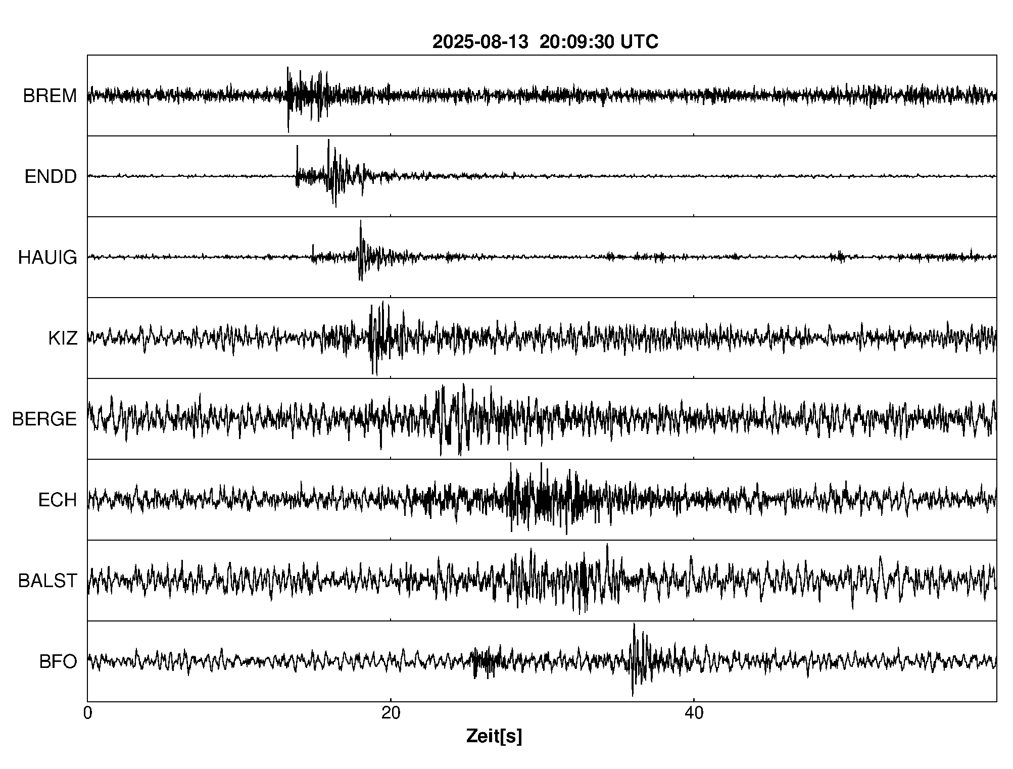 Pfadnavigation Startseite Geologischer Dienst Erdbeben Aktuelle Erdbeben Erdbeben bei Müllheim, Lkrs. Breisgau-H., BW Teilen Erdbeben bei Müllheim, Lkrs. Breisgau-H., BW Erdbeben bei: Müllheim, Lkrs. Breisgau-H., BW Datum/Uhrzeit: am 13.08.2025 um 22:09 Uhr Ortszeit (MESZ) Stärke: 0.2 (Magnitude auf der Richter-Skala) Epizentrum: 47.84° N ㅤ 7.65° E Herdtiefe: ca. 4 km unter der Erdoberfläche Bemerkung: sehr schwaches Erdbeben Seismogramme ausgewählter Erdbebenmessstationen: Erläuterungen: Datum/Uhrzeit:Datum und Zeit des Erdbebens in Ortszeit, also MEZ oder MESZ; Epizentrum:Punkt an der Erdoberfläche über dem Hypozentrum (Lage des Erdbebenherdes in der Tiefe); Magnitude:Erdbebenstärke auf der Richterskala (Lokalmagnitude ML); Herdtiefe:Tiefe des Erdbebens (Hypozentrums) in Kilometern unter NN. Seismogramme:Details zu den Erdbebenmessstationen finden sich im Kartenviewer des LGRB (Baden-Württemberg) und im Kartenviewer des LGB (Rheinland-Pfalz).