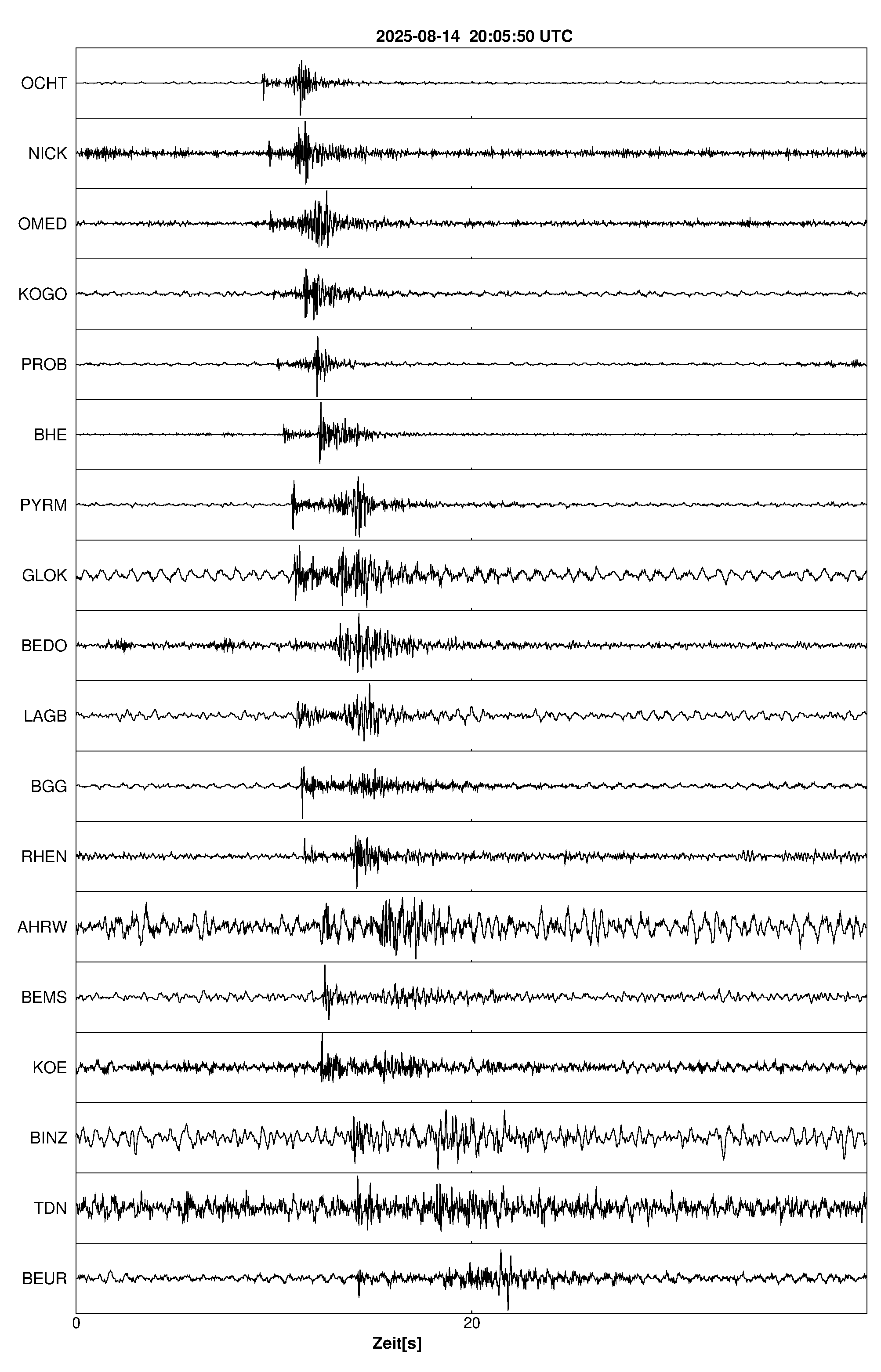 Pfadnavigation Startseite Geologischer Dienst Erdbeben Aktuelle Erdbeben Erdbeben bei Kretz, Lkrs. Mayen-Koblenz, RP Teilen Erdbeben bei Kretz, Lkrs. Mayen-Koblenz, RP Erdbeben bei: Kretz, Lkrs. Mayen-Koblenz, RP Datum/Uhrzeit: am 14.08.2025 um 22:05 Uhr Ortszeit (MESZ) Stärke: 0.5 (Magnitude auf der Richter-Skala) Epizentrum: 50.38° N ㅤ 7.36° E Herdtiefe: ca. 10 km unter der Erdoberfläche Bemerkung: sehr schwaches Erdbeben Seismogramme ausgewählter Erdbebenmessstationen: Erläuterungen: Datum/Uhrzeit:Datum und Zeit des Erdbebens in Ortszeit, also MEZ oder MESZ; Epizentrum:Punkt an der Erdoberfläche über dem Hypozentrum (Lage des Erdbebenherdes in der Tiefe); Magnitude:Erdbebenstärke auf der Richterskala (Lokalmagnitude ML); Herdtiefe:Tiefe des Erdbebens (Hypozentrums) in Kilometern unter NN. Seismogramme:Details zu den Erdbebenmessstationen finden sich im Kartenviewer des LGRB (Baden-Württemberg) und im Kartenviewer des LGB (Rheinland-Pfalz).
