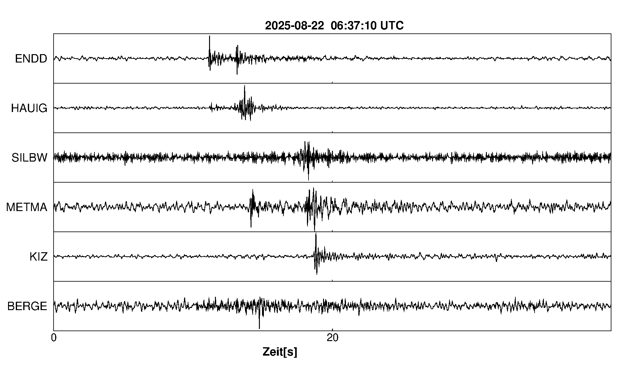 Pfadnavigation Startseite Geologischer Dienst Erdbeben Aktuelle Erdbeben Erdbeben bei Schopfheim, Lkrs. Lörrach, BW Teilen Erdbeben bei Schopfheim, Lkrs. Lörrach, BW Erdbeben bei: Schopfheim, Lkrs. Lörrach, BW Datum/Uhrzeit: am 22.08.2025 um 08:37 Uhr Ortszeit (MESZ) Stärke: 0.5 (Magnitude auf der Richter-Skala) Epizentrum: 47.66° N ㅤ 7.85° E Herdtiefe: ca. 10 km unter der Erdoberfläche Bemerkung: sehr schwaches Erdbeben Seismogramme ausgewählter Erdbebenmessstationen: Erläuterungen: Datum/Uhrzeit:Datum und Zeit des Erdbebens in Ortszeit, also MEZ oder MESZ; Epizentrum:Punkt an der Erdoberfläche über dem Hypozentrum (Lage des Erdbebenherdes in der Tiefe); Magnitude:Erdbebenstärke auf der Richterskala (Lokalmagnitude ML); Herdtiefe:Tiefe des Erdbebens (Hypozentrums) in Kilometern unter NN. Seismogramme:Details zu den Erdbebenmessstationen finden sich im Kartenviewer des LGRB (Baden-Württemberg) und im Kartenviewer des LGB (Rheinland-Pfalz).