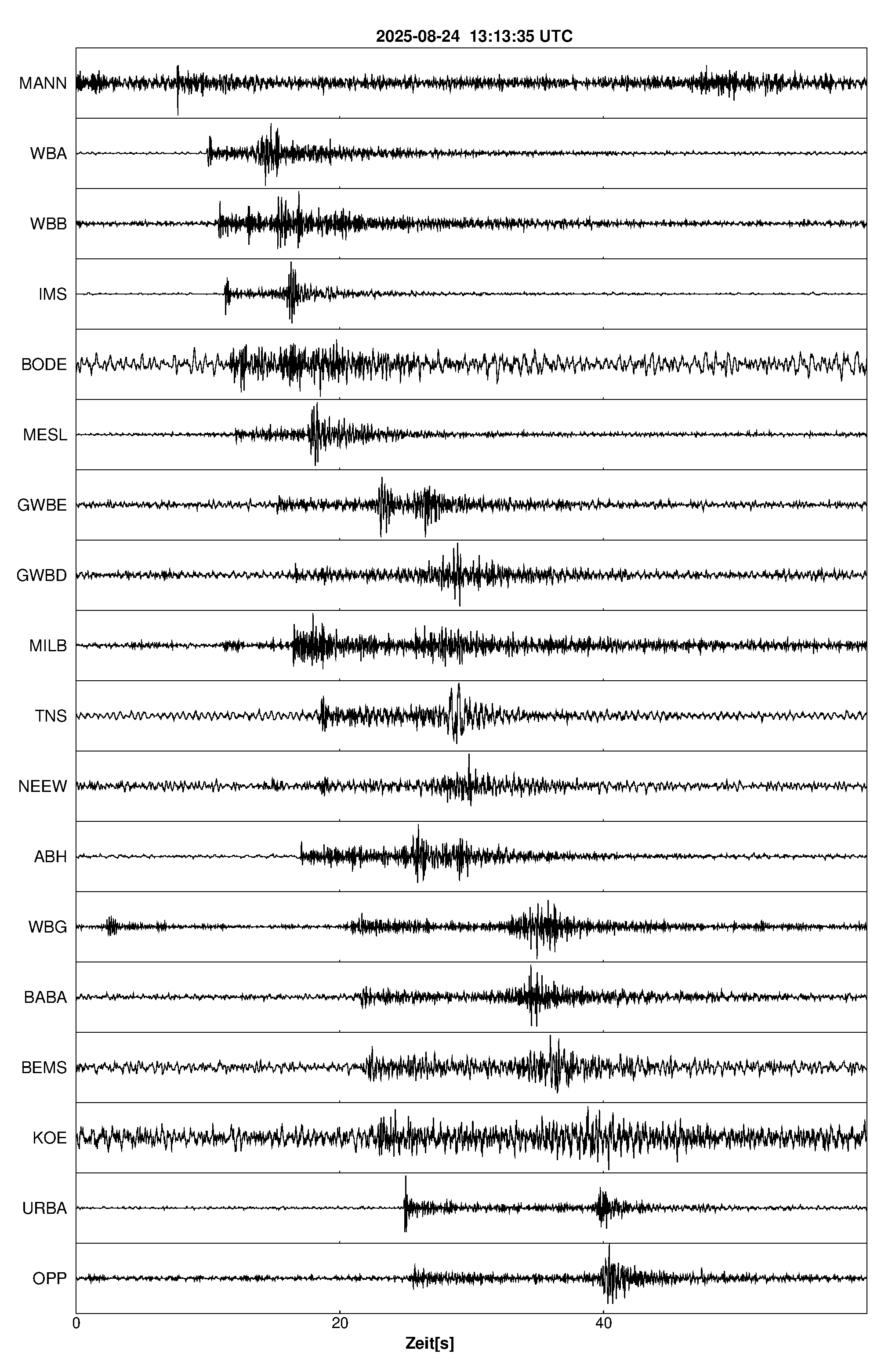 Pfadnavigation Startseite Geologischer Dienst Erdbeben Aktuelle Erdbeben Erdbeben bei Frankenthal (Pfalz), RP Teilen Erdbeben bei Frankenthal (Pfalz), RP Erdbeben bei: Frankenthal (Pfalz), RP Datum/Uhrzeit: am 24.08.2025 um 15:13 Uhr Ortszeit (MESZ) Stärke: 1.4 (Magnitude auf der Richter-Skala) Epizentrum: 49.57° N ㅤ 8.41° E Herdtiefe: ca. 10 km unter der Erdoberfläche Bemerkung: sehr schwaches Erdbeben Seismogramme ausgewählter Erdbebenmessstationen: Erläuterungen: Datum/Uhrzeit:Datum und Zeit des Erdbebens in Ortszeit, also MEZ oder MESZ; Epizentrum:Punkt an der Erdoberfläche über dem Hypozentrum (Lage des Erdbebenherdes in der Tiefe); Magnitude:Erdbebenstärke auf der Richterskala (Lokalmagnitude ML); Herdtiefe:Tiefe des Erdbebens (Hypozentrums) in Kilometern unter NN. Seismogramme:Details zu den Erdbebenmessstationen finden sich im Kartenviewer des LGRB (Baden-Württemberg) und im Kartenviewer des LGB (Rheinland-Pfalz).