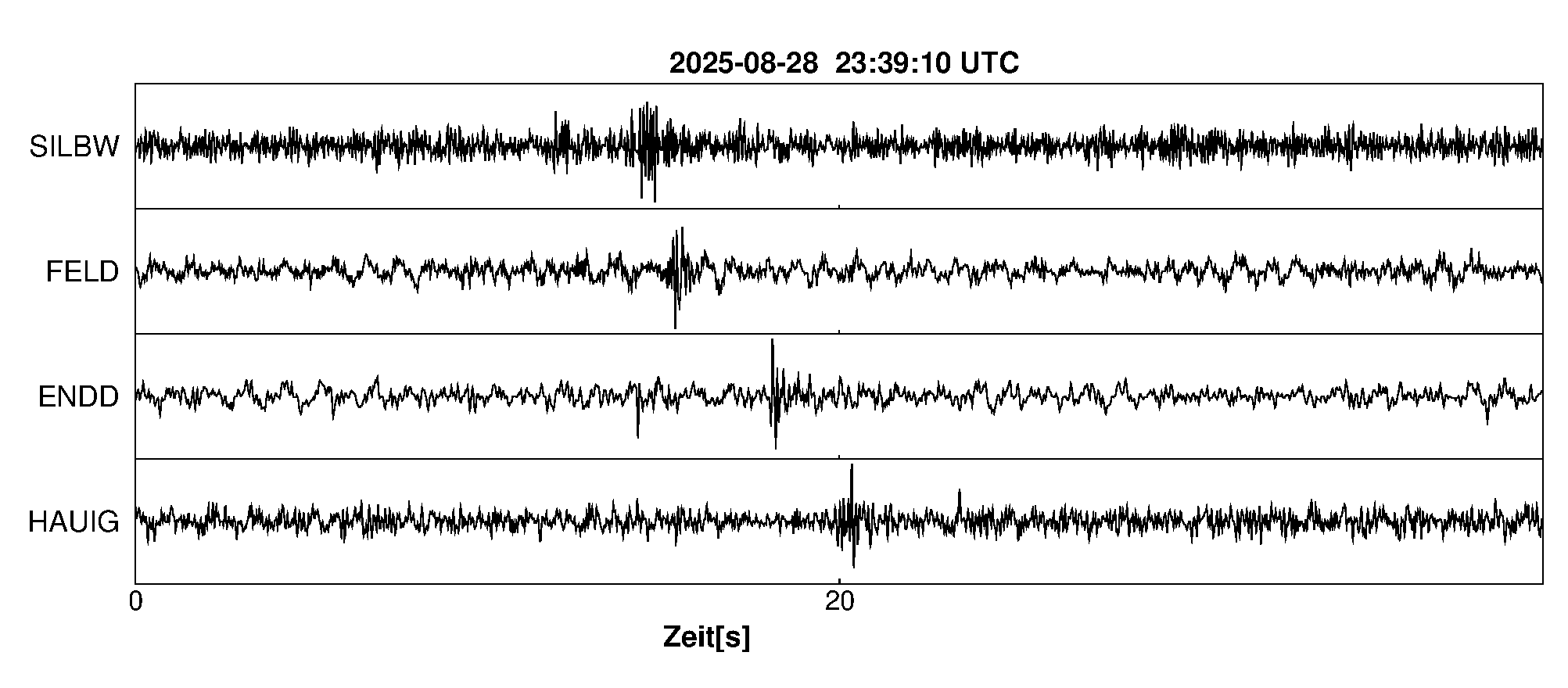 Pfadnavigation Startseite Geologischer Dienst Erdbeben Aktuelle Erdbeben Erdbeben bei Horben, Lkrs. Breisgau-H., BW Teilen Erdbeben bei Horben, Lkrs. Breisgau-H., BW Erdbeben bei: Horben, Lkrs. Breisgau-H., BW Datum/Uhrzeit: am 29.08.2025 um 01:39 Uhr Ortszeit (MESZ) Stärke: 0.4 (Magnitude auf der Richter-Skala) Epizentrum: 47.95° N ㅤ 7.87° E Herdtiefe: ca. 15 km unter der Erdoberfläche Bemerkung: sehr schwaches Erdbeben Seismogramme ausgewählter Erdbebenmessstationen: Erläuterungen: Datum/Uhrzeit:Datum und Zeit des Erdbebens in Ortszeit, also MEZ oder MESZ; Epizentrum:Punkt an der Erdoberfläche über dem Hypozentrum (Lage des Erdbebenherdes in der Tiefe); Magnitude:Erdbebenstärke auf der Richterskala (Lokalmagnitude ML); Herdtiefe:Tiefe des Erdbebens (Hypozentrums) in Kilometern unter NN. Seismogramme:Details zu den Erdbebenmessstationen finden sich im Kartenviewer des LGRB (Baden-Württemberg) und im Kartenviewer des LGB (Rheinland-Pfalz).