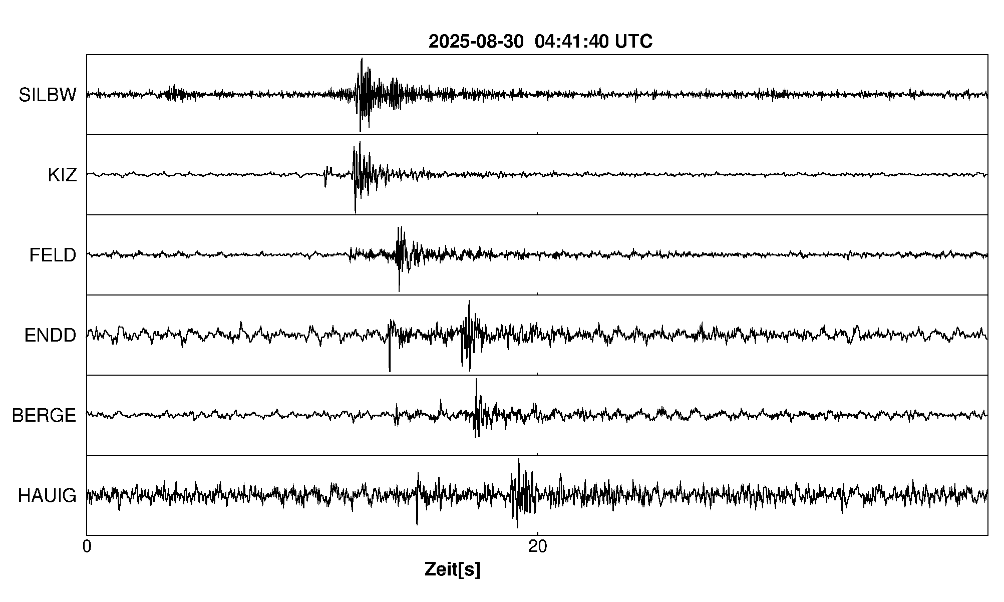 Pfadnavigation Startseite Geologischer Dienst Erdbeben Aktuelle Erdbeben Erdbeben bei Wittnau, Lkrs. Breisgau-H., BW Teilen Erdbeben bei Wittnau, Lkrs. Breisgau-H., BW Erdbeben bei: Wittnau, Lkrs. Breisgau-H., BW Datum/Uhrzeit: am 30.08.2025 um 06:41 Uhr Ortszeit (MESZ) Stärke: 0.4 (Magnitude auf der Richter-Skala) Epizentrum: 47.94° N ㅤ 7.83° E Herdtiefe: ca. 7 km unter der Erdoberfläche Bemerkung: sehr schwaches Erdbeben Seismogramme ausgewählter Erdbebenmessstationen: Erläuterungen: Datum/Uhrzeit:Datum und Zeit des Erdbebens in Ortszeit, also MEZ oder MESZ; Epizentrum:Punkt an der Erdoberfläche über dem Hypozentrum (Lage des Erdbebenherdes in der Tiefe); Magnitude:Erdbebenstärke auf der Richterskala (Lokalmagnitude ML); Herdtiefe:Tiefe des Erdbebens (Hypozentrums) in Kilometern unter NN. Seismogramme:Details zu den Erdbebenmessstationen finden sich im Kartenviewer des LGRB (Baden-Württemberg) und im Kartenviewer des LGB (Rheinland-Pfalz).
