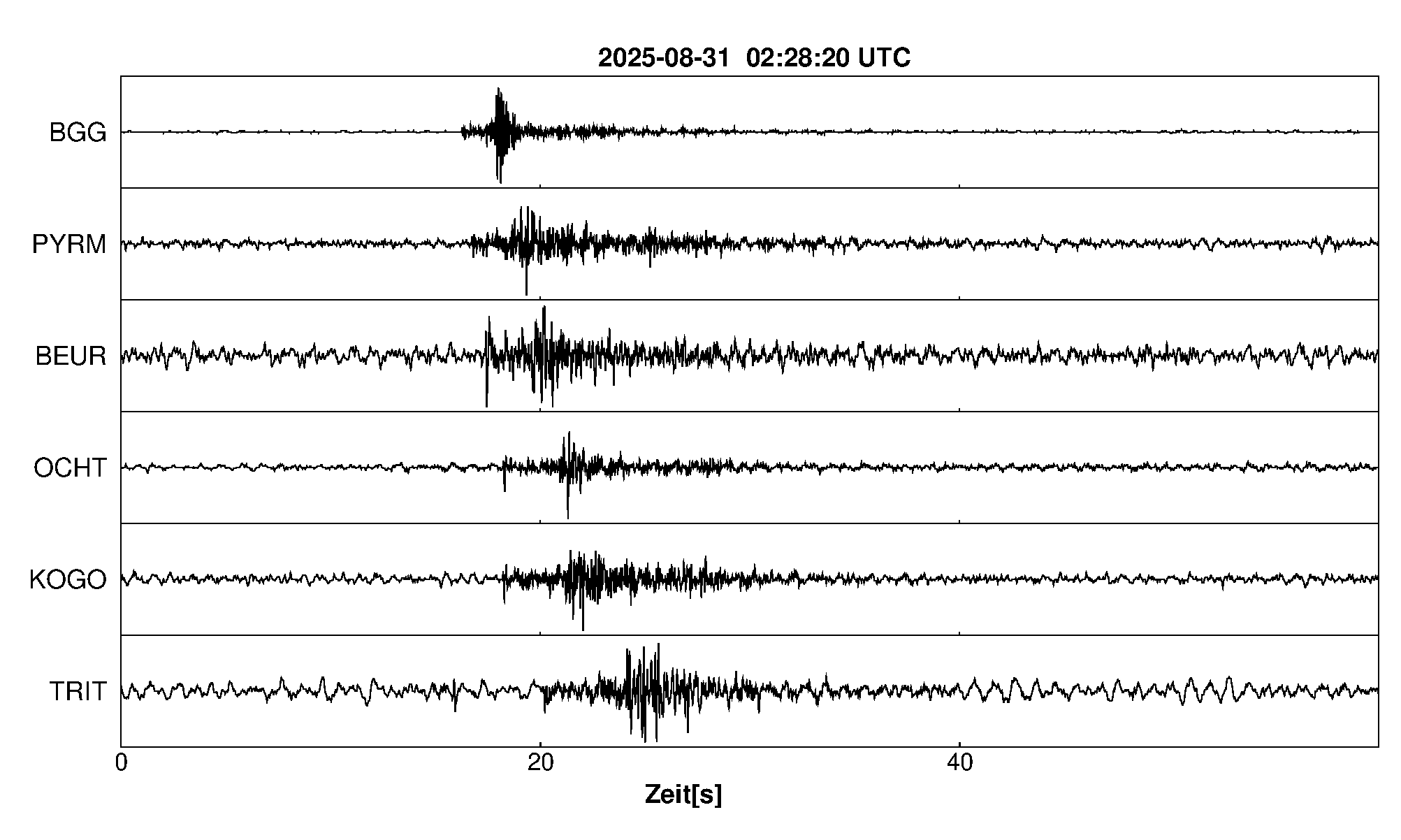 Pfadnavigation Startseite Geologischer Dienst Erdbeben Aktuelle Erdbeben Erdbeben bei Mörsdorf, Rhein-Hunsrück-Kreis, RP Teilen Erdbeben bei Mörsdorf, Rhein-Hunsrück-Kreis, RP Erdbeben bei: Mörsdorf, Rhein-Hunsrück-Kreis, RP Datum/Uhrzeit: am 31.08.2025 um 04:28 Uhr Ortszeit (MESZ) Stärke: 0.6 (Magnitude auf der Richter-Skala) Epizentrum: 50.12° N ㅤ 7.33° E Herdtiefe: ca. 10 km unter der Erdoberfläche Bemerkung: sehr schwaches Erdbeben Seismogramme ausgewählter Erdbebenmessstationen: Erläuterungen: Datum/Uhrzeit:Datum und Zeit des Erdbebens in Ortszeit, also MEZ oder MESZ; Epizentrum:Punkt an der Erdoberfläche über dem Hypozentrum (Lage des Erdbebenherdes in der Tiefe); Magnitude:Erdbebenstärke auf der Richterskala (Lokalmagnitude ML); Herdtiefe:Tiefe des Erdbebens (Hypozentrums) in Kilometern unter NN. Seismogramme:Details zu den Erdbebenmessstationen finden sich im Kartenviewer des LGRB (Baden-Württemberg) und im Kartenviewer des LGB (Rheinland-Pfalz).