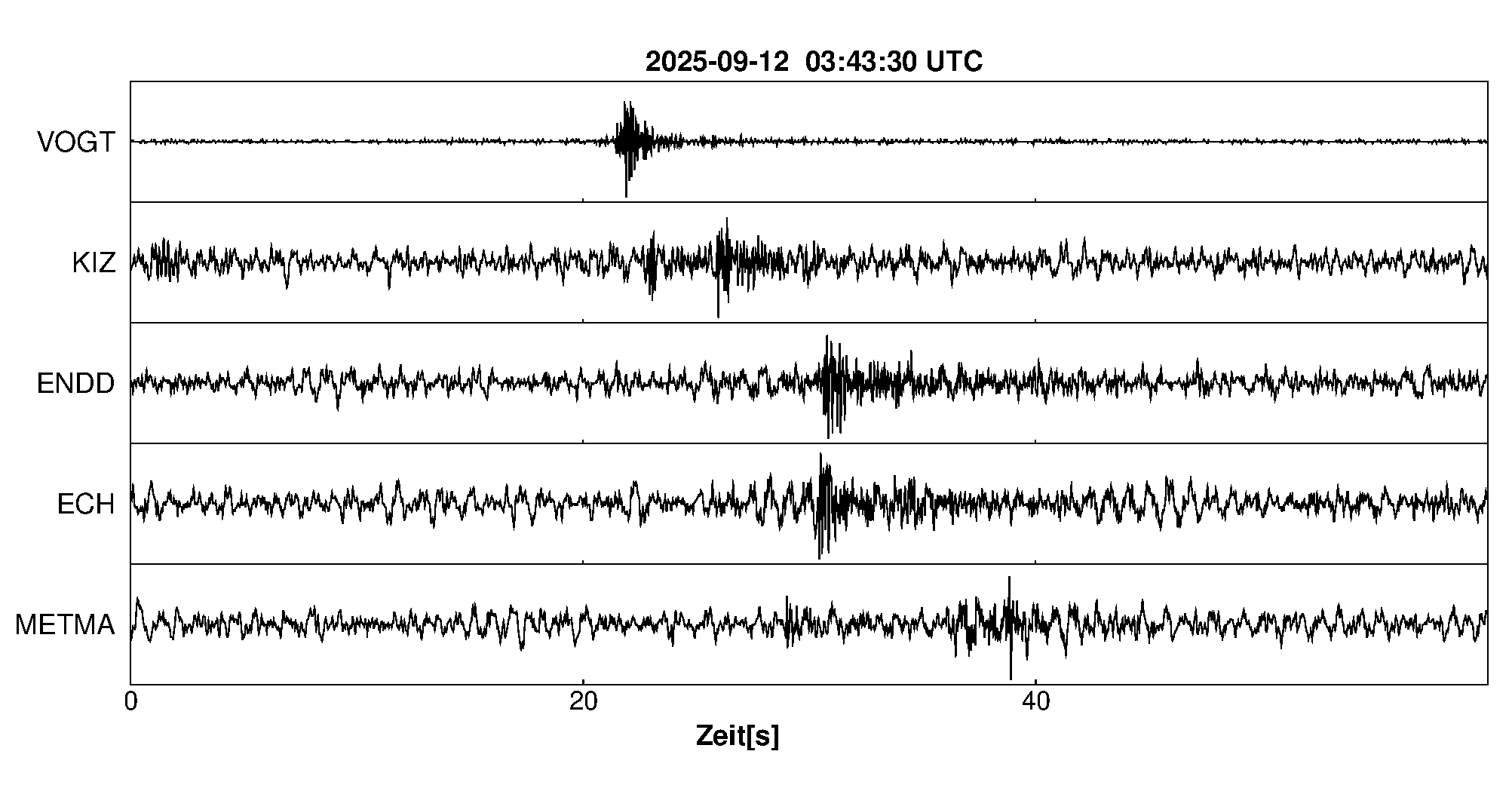 Pfadnavigation Startseite Geologischer Dienst Erdbeben Aktuelle Erdbeben Erdbeben bei Vogtsburg im Kaiserstuhl, Lkrs. Breisgau-H., BW Teilen Erdbeben bei Vogtsburg im Kaiserstuhl, Lkrs. Breisgau-H., BW Erdbeben bei: Vogtsburg im Kaiserstuhl, Lkrs. Breisgau-H., BW Datum/Uhrzeit: am 12.09.2025 um 05:43 Uhr Ortszeit (MESZ) Stärke: 0.5 (Magnitude auf der Richter-Skala) Epizentrum: 48.07° N ㅤ 7.66° E Herdtiefe: ca. 8 km unter der Erdoberfläche Bemerkung: sehr schwaches Erdbeben Seismogramme ausgewählter Erdbebenmessstationen: Erläuterungen: Datum/Uhrzeit:Datum und Zeit des Erdbebens in Ortszeit, also MEZ oder MESZ; Epizentrum:Punkt an der Erdoberfläche über dem Hypozentrum (Lage des Erdbebenherdes in der Tiefe); Magnitude:Erdbebenstärke auf der Richterskala (Lokalmagnitude ML); Herdtiefe:Tiefe des Erdbebens (Hypozentrums) in Kilometern unter NN. Seismogramme:Details zu den Erdbebenmessstationen finden sich im Kartenviewer des LGRB (Baden-Württemberg) und im Kartenviewer des LGB (Rheinland-Pfalz).