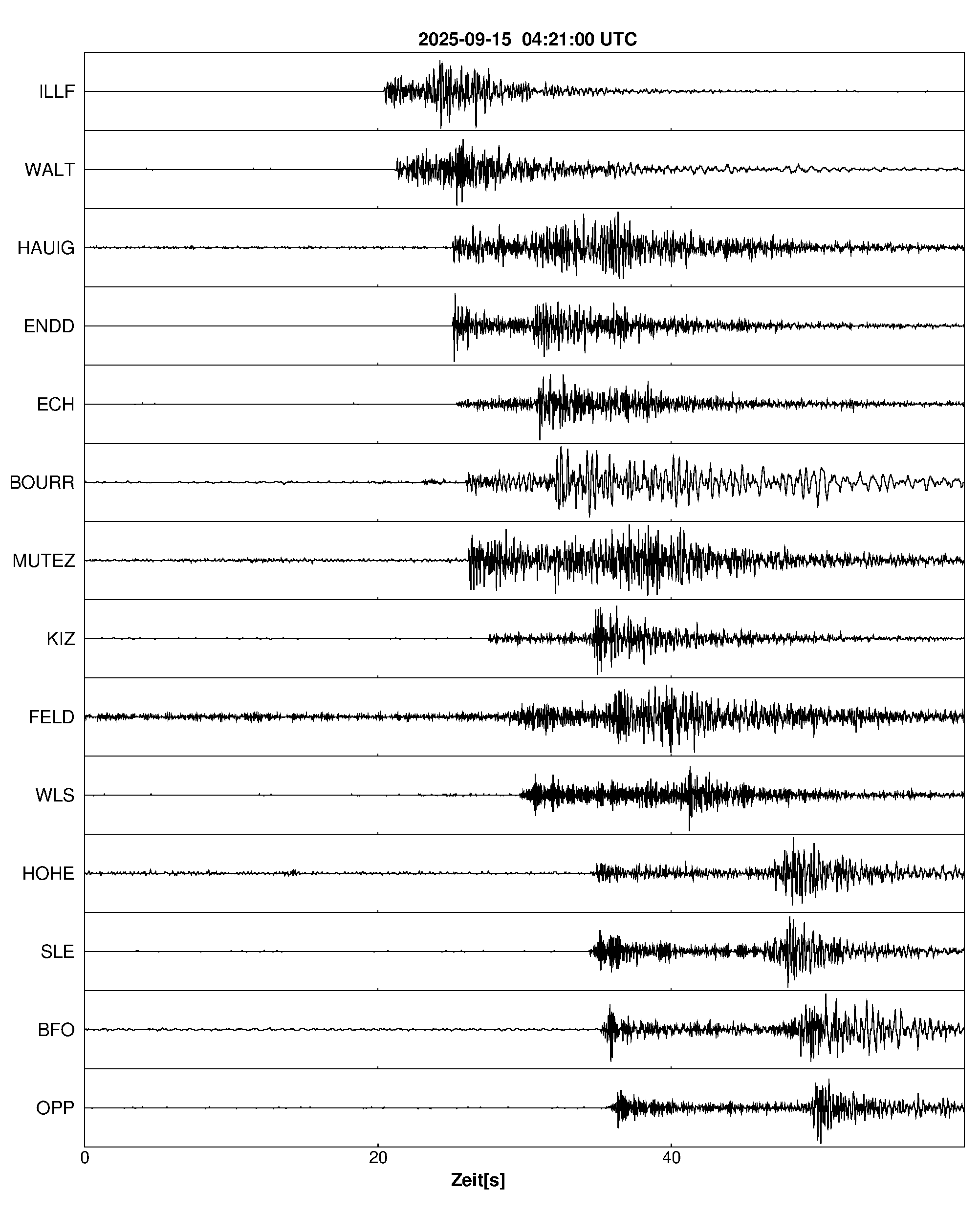 Pfadnavigation Startseite Geologischer Dienst Erdbeben Aktuelle Erdbeben Erdbeben bei Cernay, Dep. Haut-Rhin, F Teilen Erdbeben bei Cernay, Dep. Haut-Rhin, F Erdbeben außerhalb von Baden-Württemberg und Rheinland-Pfalz:Die maßgeblichen Angaben veröffentlicht der lokal zuständige Erdbebendienst. Erdbeben bei: Cernay, Dep. Haut-Rhin, F Datum/Uhrzeit: am 15.09.2025 um 06:21 Uhr Ortszeit (MESZ) Stärke: 2.0 (Magnitude auf der Richter-Skala) Epizentrum: 47.81° N ㅤ 7.17° E Herdtiefe: ca. 5 km unter der Erdoberfläche Bemerkung: schwaches Erdbeben Seismogramme ausgewählter Erdbebenmessstationen: Erläuterungen: Datum/Uhrzeit:Datum und Zeit des Erdbebens in Ortszeit, also MEZ oder MESZ; Epizentrum:Punkt an der Erdoberfläche über dem Hypozentrum (Lage des Erdbebenherdes in der Tiefe); Magnitude:Erdbebenstärke auf der Richterskala (Lokalmagnitude ML); Herdtiefe:Tiefe des Erdbebens (Hypozentrums) in Kilometern unter NN. Seismogramme:Details zu den Erdbebenmessstationen finden sich im Kartenviewer des LGRB (Baden-Württemberg) und im Kartenviewer des LGB (Rheinland-Pfalz).