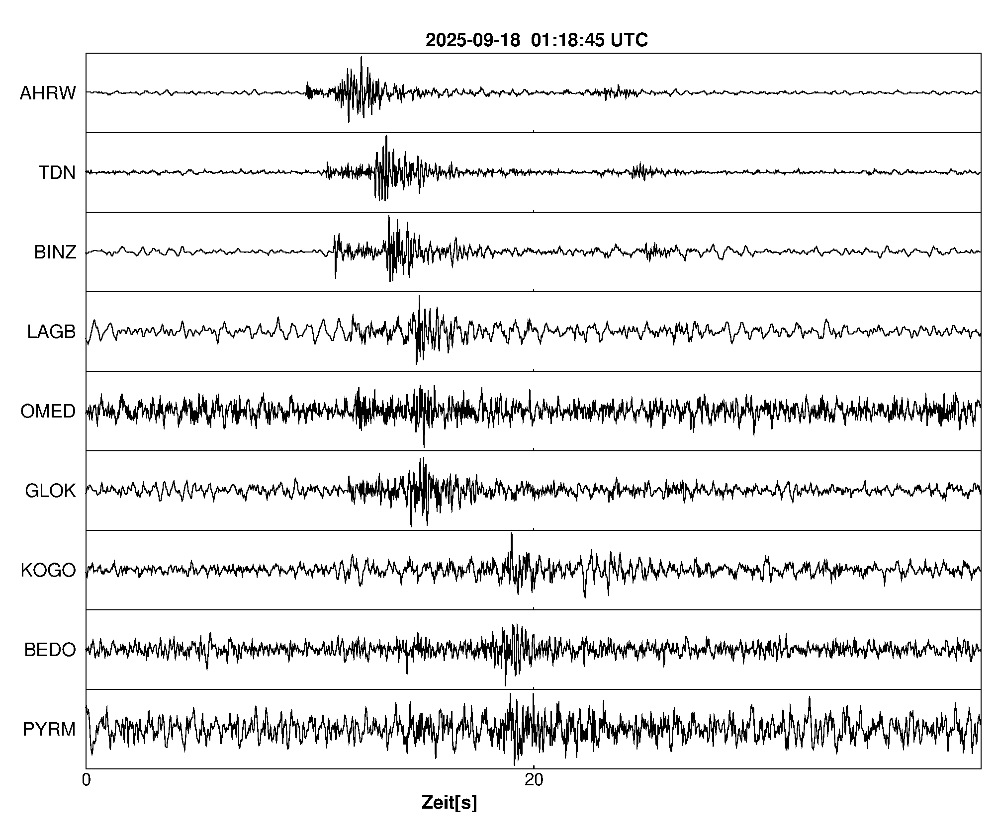 Pfadnavigation Startseite Geologischer Dienst Erdbeben Aktuelle Erdbeben Erdbeben bei Bad Neuenahr-Ahrweiler, Lkrs. Ahrweiler, RP Teilen Erdbeben bei Bad Neuenahr-Ahrweiler, Lkrs. Ahrweiler, RP Erdbeben bei: Bad Neuenahr-Ahrweiler, Lkrs. Ahrweiler, RP Datum/Uhrzeit: am 18.09.2025 um 03:18 Uhr Ortszeit (MESZ) Stärke: 0.6 (Magnitude auf der Richter-Skala) Epizentrum: 50.55° N ㅤ 7.12° E Herdtiefe: ca. 12 km unter der Erdoberfläche Bemerkung: sehr schwaches Erdbeben Seismogramme ausgewählter Erdbebenmessstationen: Erläuterungen: Datum/Uhrzeit:Datum und Zeit des Erdbebens in Ortszeit, also MEZ oder MESZ; Epizentrum:Punkt an der Erdoberfläche über dem Hypozentrum (Lage des Erdbebenherdes in der Tiefe); Magnitude:Erdbebenstärke auf der Richterskala (Lokalmagnitude ML); Herdtiefe:Tiefe des Erdbebens (Hypozentrums) in Kilometern unter NN. Seismogramme:Details zu den Erdbebenmessstationen finden sich im Kartenviewer des LGRB (Baden-Württemberg) und im Kartenviewer des LGB (Rheinland-Pfalz).