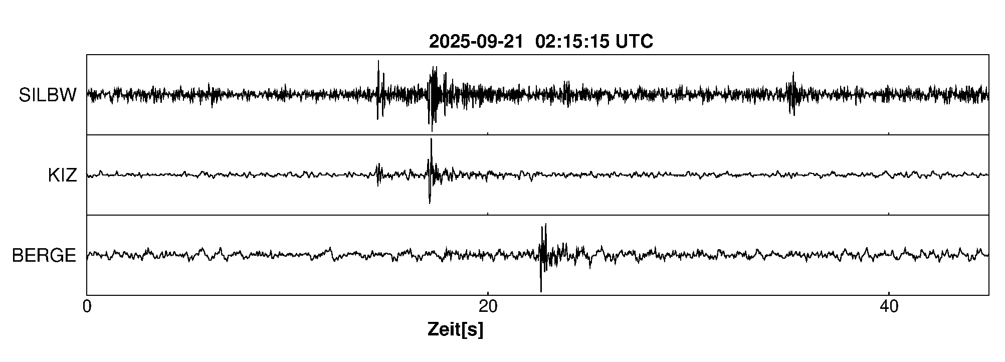 Pfadnavigation Startseite Geologischer Dienst Erdbeben Aktuelle Erdbeben Erdbeben bei Bad Krozingen, Lkrs. Breisgau-H., BW Teilen Erdbeben bei Bad Krozingen, Lkrs. Breisgau-H., BW Erdbeben bei: Bad Krozingen, Lkrs. Breisgau-H., BW Datum/Uhrzeit: am 21.09.2025 um 04:15 Uhr Ortszeit (MESZ) Stärke: 0.4 (Magnitude auf der Richter-Skala) Epizentrum: 47.94° N ㅤ 7.67° E Herdtiefe: ca. 8 km unter der Erdoberfläche Bemerkung: sehr schwaches Erdbeben Seismogramme ausgewählter Erdbebenmessstationen: Erläuterungen: Datum/Uhrzeit:Datum und Zeit des Erdbebens in Ortszeit, also MEZ oder MESZ; Epizentrum:Punkt an der Erdoberfläche über dem Hypozentrum (Lage des Erdbebenherdes in der Tiefe); Magnitude:Erdbebenstärke auf der Richterskala (Lokalmagnitude ML); Herdtiefe:Tiefe des Erdbebens (Hypozentrums) in Kilometern unter NN. Seismogramme:Details zu den Erdbebenmessstationen finden sich im Kartenviewer des LGRB (Baden-Württemberg) und im Kartenviewer des LGB (Rheinland-Pfalz).