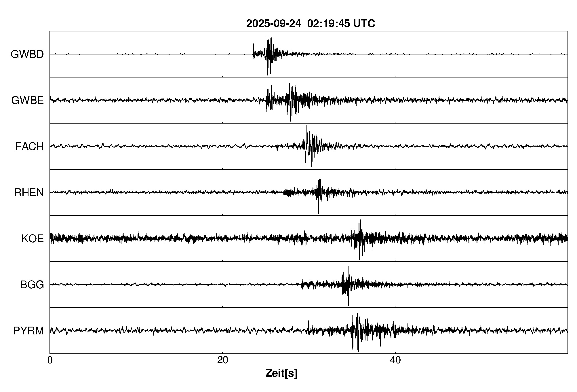 Pfadnavigation Startseite Geologischer Dienst Erdbeben Aktuelle Erdbeben Erdbeben bei Heidenrod, Rheingau-Taunus-Kreis, HS Teilen Erdbeben bei Heidenrod, Rheingau-Taunus-Kreis, HS Erdbeben außerhalb von Baden-Württemberg und Rheinland-Pfalz:Die maßgeblichen Angaben veröffentlicht der lokal zuständige Erdbebendienst. Erdbeben bei: Heidenrod, Rheingau-Taunus-Kreis, HS Datum/Uhrzeit: am 24.09.2025 um 04:20 Uhr Ortszeit (MESZ) Stärke: 0.8 (Magnitude auf der Richter-Skala) Epizentrum: 50.12° N ㅤ 7.93° E Herdtiefe: ca. 10 km unter der Erdoberfläche Bemerkung: sehr schwaches Erdbeben Seismogramme ausgewählter Erdbebenmessstationen: Erläuterungen: Datum/Uhrzeit:Datum und Zeit des Erdbebens in Ortszeit, also MEZ oder MESZ; Epizentrum:Punkt an der Erdoberfläche über dem Hypozentrum (Lage des Erdbebenherdes in der Tiefe); Magnitude:Erdbebenstärke auf der Richterskala (Lokalmagnitude ML); Herdtiefe:Tiefe des Erdbebens (Hypozentrums) in Kilometern unter NN. Seismogramme:Details zu den Erdbebenmessstationen finden sich im Kartenviewer des LGRB (Baden-Württemberg) und im Kartenviewer des LGB (Rheinland-Pfalz).