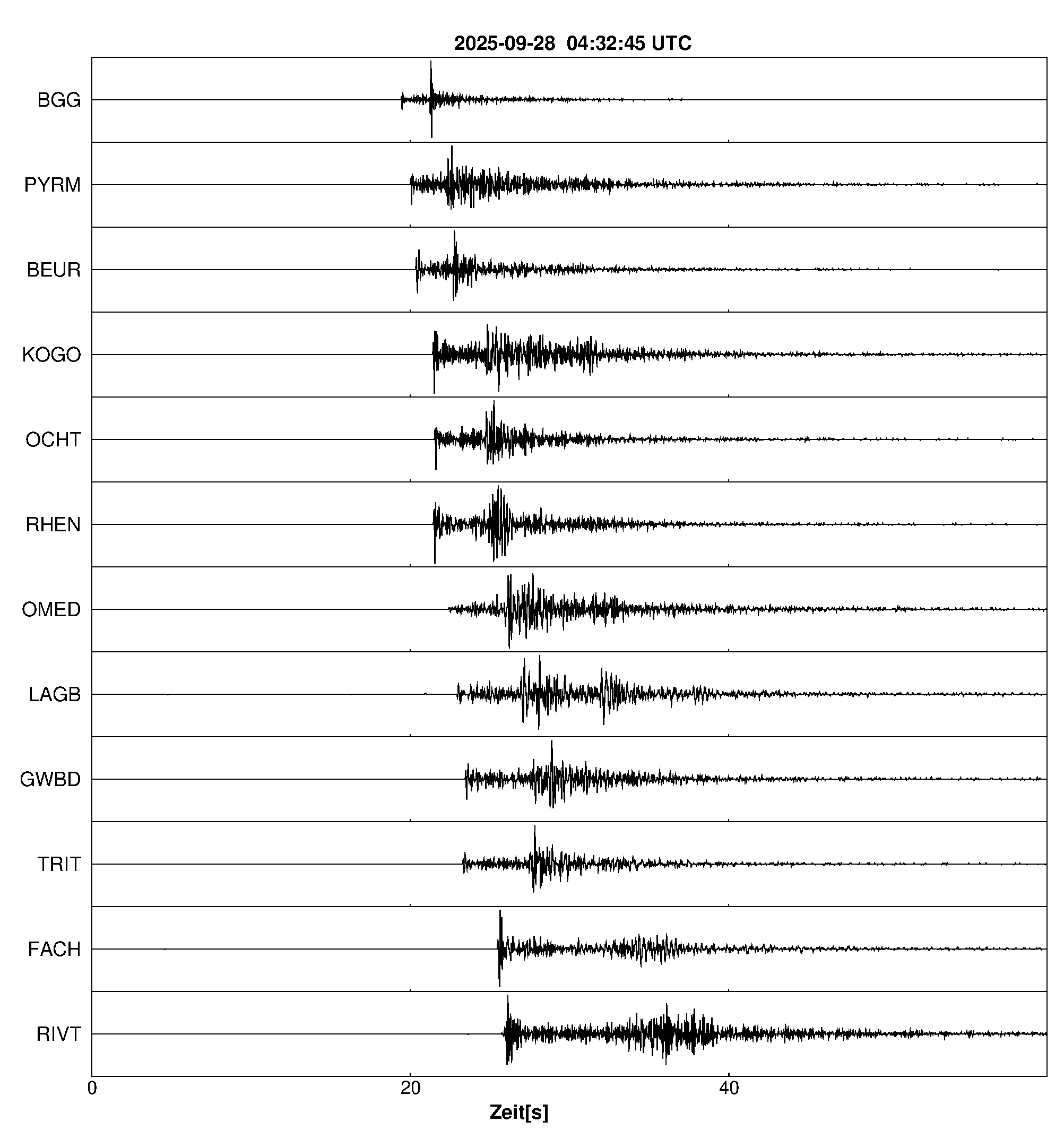 Pfadnavigation Startseite Geologischer Dienst Erdbeben Aktuelle Erdbeben Erdbeben bei Mörsdorf, Rhein-Hunsrück-Kreis, RP Teilen Erdbeben bei Mörsdorf, Rhein-Hunsrück-Kreis, RP Erdbeben bei: Mörsdorf, Rhein-Hunsrück-Kreis, RP Datum/Uhrzeit: am 28.09.2025 um 06:33 Uhr Ortszeit (MESZ) Stärke: 1.7 (Magnitude auf der Richter-Skala) Epizentrum: 50.1° N ㅤ 7.37° E Herdtiefe: ca. 9 km unter der Erdoberfläche Bemerkung: sehr schwaches Erdbeben Seismogramme ausgewählter Erdbebenmessstationen: Erläuterungen: Datum/Uhrzeit:Datum und Zeit des Erdbebens in Ortszeit, also MEZ oder MESZ; Epizentrum:Punkt an der Erdoberfläche über dem Hypozentrum (Lage des Erdbebenherdes in der Tiefe); Magnitude:Erdbebenstärke auf der Richterskala (Lokalmagnitude ML); Herdtiefe:Tiefe des Erdbebens (Hypozentrums) in Kilometern unter NN. Seismogramme:Details zu den Erdbebenmessstationen finden sich im Kartenviewer des LGRB (Baden-Württemberg) und im Kartenviewer des LGB (Rheinland-Pfalz).