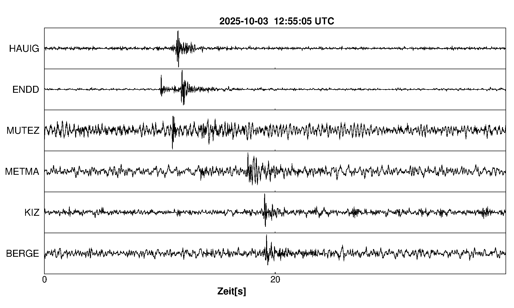 Pfadnavigation Startseite Geologischer Dienst Erdbeben Aktuelle Erdbeben Erdbeben bei Schopfheim, Lkrs. Lörrach, BW Teilen Erdbeben bei Schopfheim, Lkrs. Lörrach, BW Erdbeben bei: Schopfheim, Lkrs. Lörrach, BW Datum/Uhrzeit: am 03.10.2025 um 14:55 Uhr Ortszeit (MESZ) Stärke: 0.4 (Magnitude auf der Richter-Skala) Epizentrum: 47.62° N ㅤ 7.83° E Herdtiefe: ca. 6 km unter der Erdoberfläche Bemerkung: sehr schwaches Erdbeben Seismogramme ausgewählter Erdbebenmessstationen: Erläuterungen: Datum/Uhrzeit:Datum und Zeit des Erdbebens in Ortszeit, also MEZ oder MESZ; Epizentrum:Punkt an der Erdoberfläche über dem Hypozentrum (Lage des Erdbebenherdes in der Tiefe); Magnitude:Erdbebenstärke auf der Richterskala (Lokalmagnitude ML); Herdtiefe:Tiefe des Erdbebens (Hypozentrums) in Kilometern unter NN. Seismogramme:Details zu den Erdbebenmessstationen finden sich im Kartenviewer des LGRB (Baden-Württemberg) und im Kartenviewer des LGB (Rheinland-Pfalz).